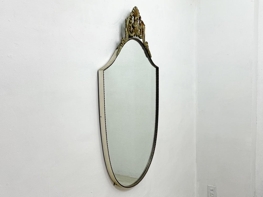 西洋の紋章の様な装飾が目を惹く、ジャパンビンテージのウォールミラー。