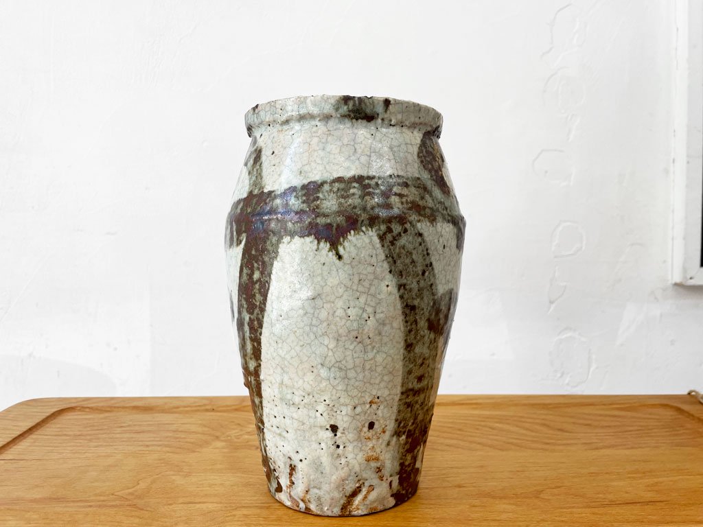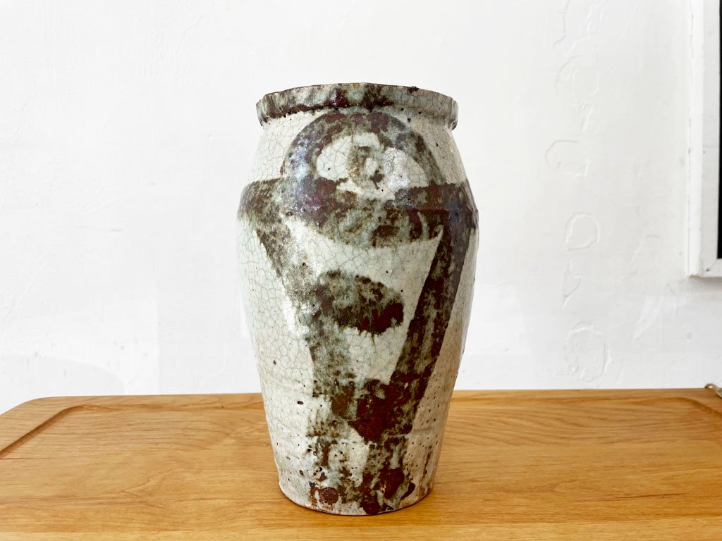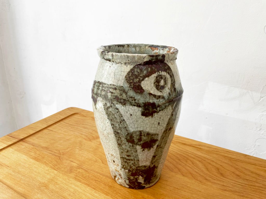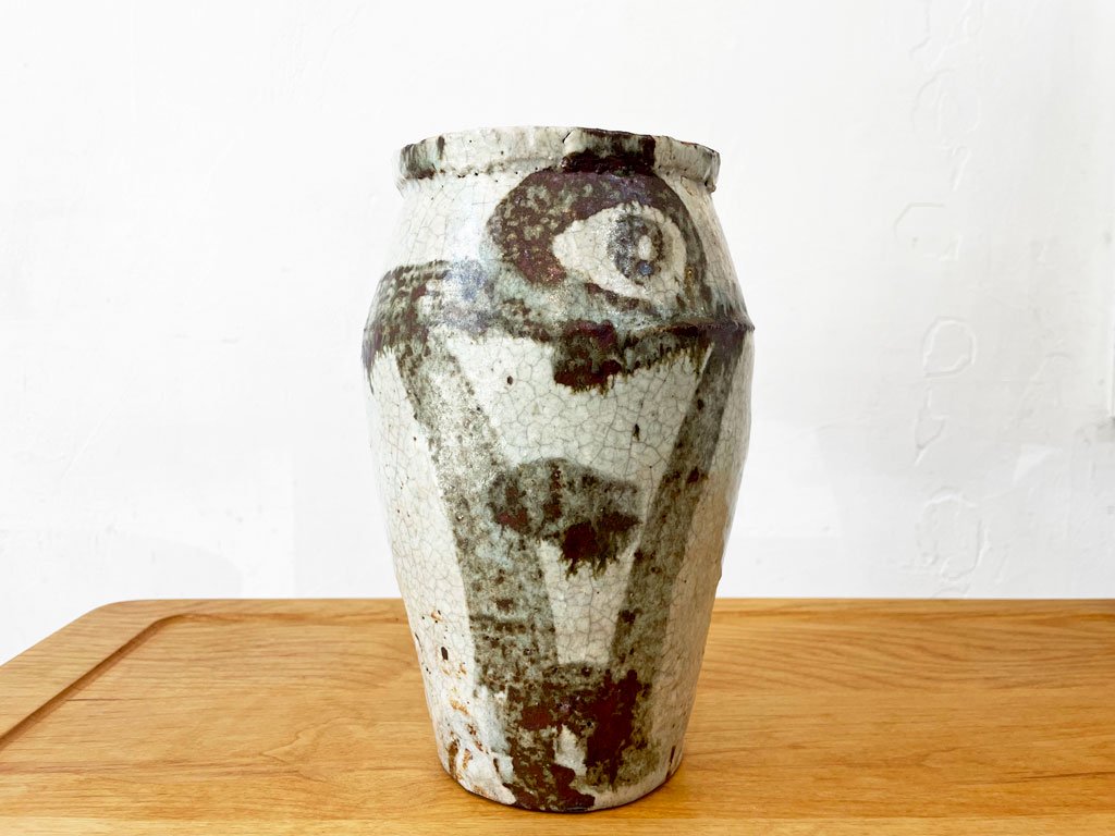 ハンドペイントによって描かれたダイナミックな柄や、貫入による荒々しい表情が魅力的な逸品。