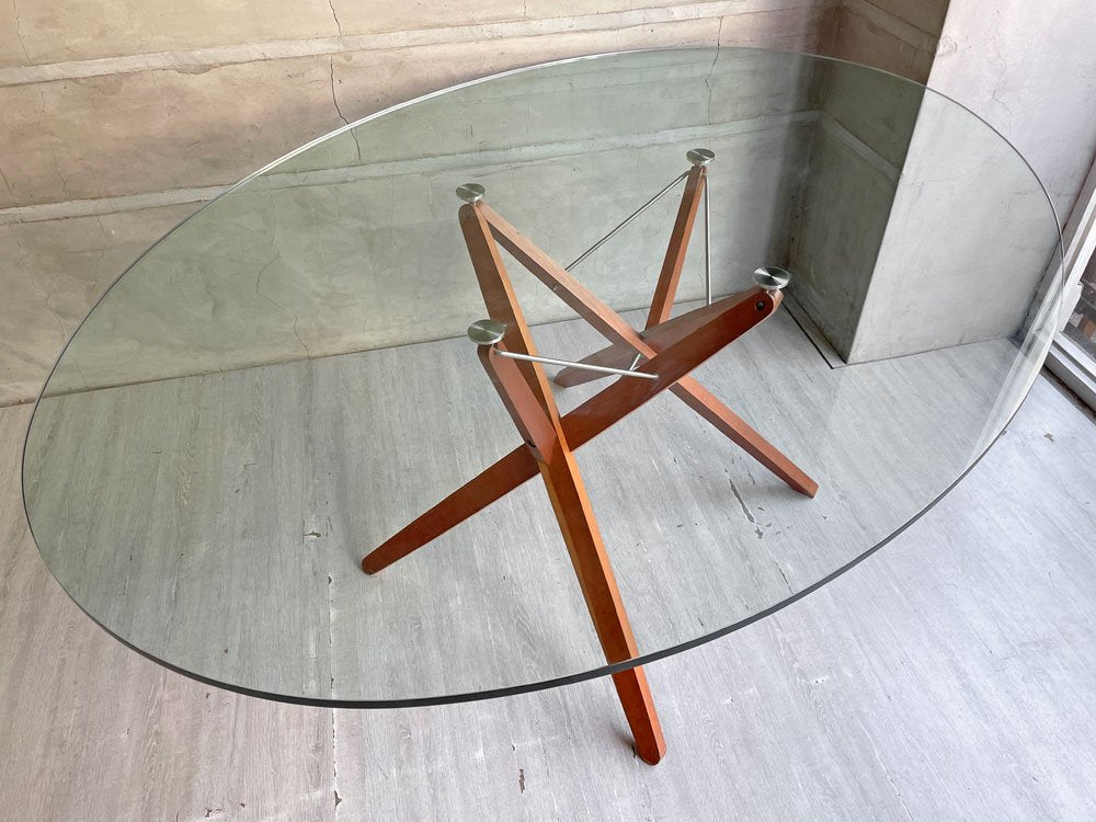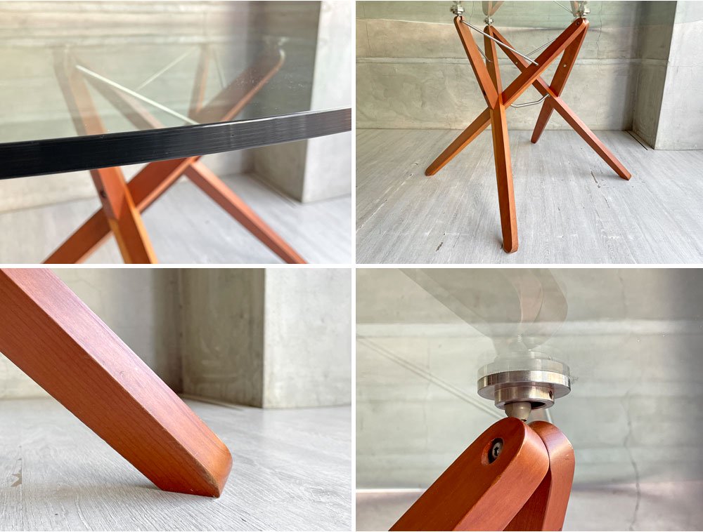 大きなオーバル型のガラス天板を支える脚部は、「トラス構造」という橋脚や体育館などで採用されている合理的な構造を採用。