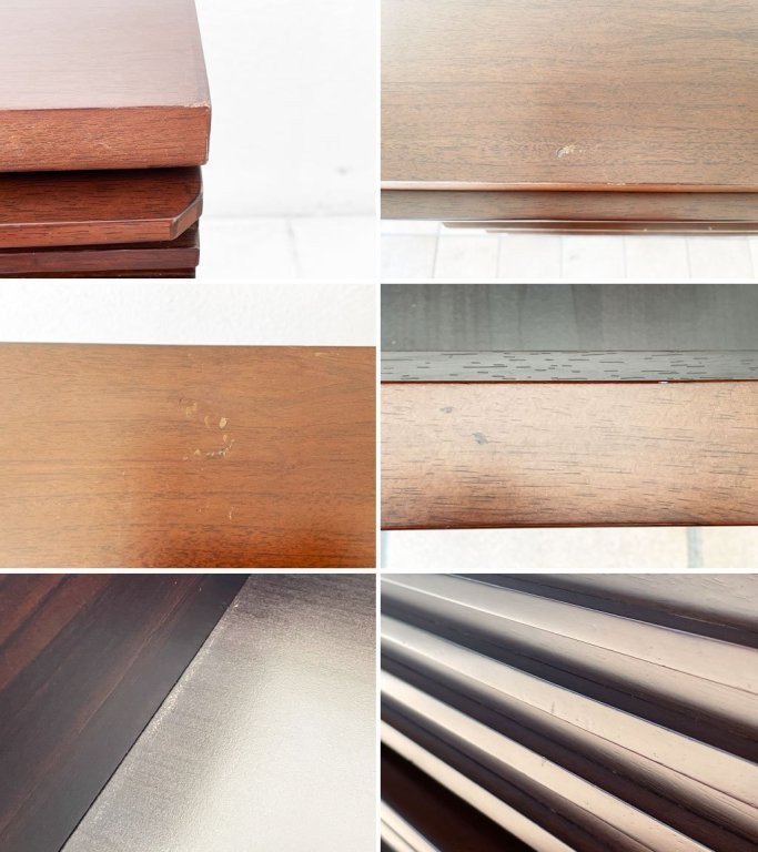 使用に伴い天板には擦れ、打痕、若干の色の薄れ、その他外観に細かな傷とペイントロスが見られますが、いずれも大きく美観を損ねるものではございません。ガタツキや割れ等使用上問題となるダメージも無く、概ね良好なコンディションを保っております。