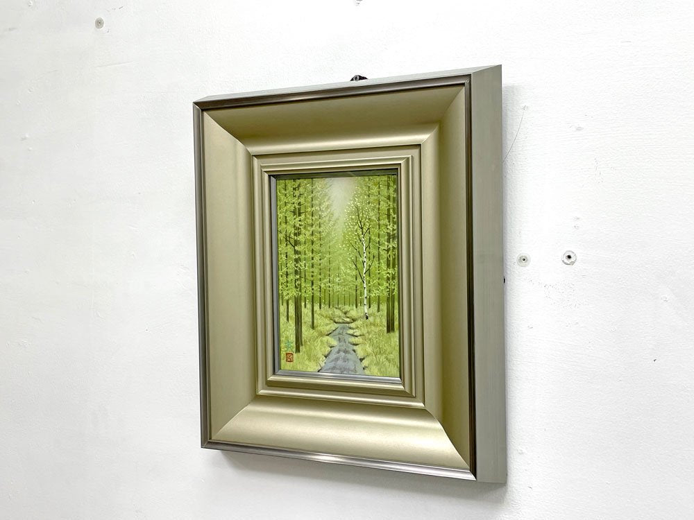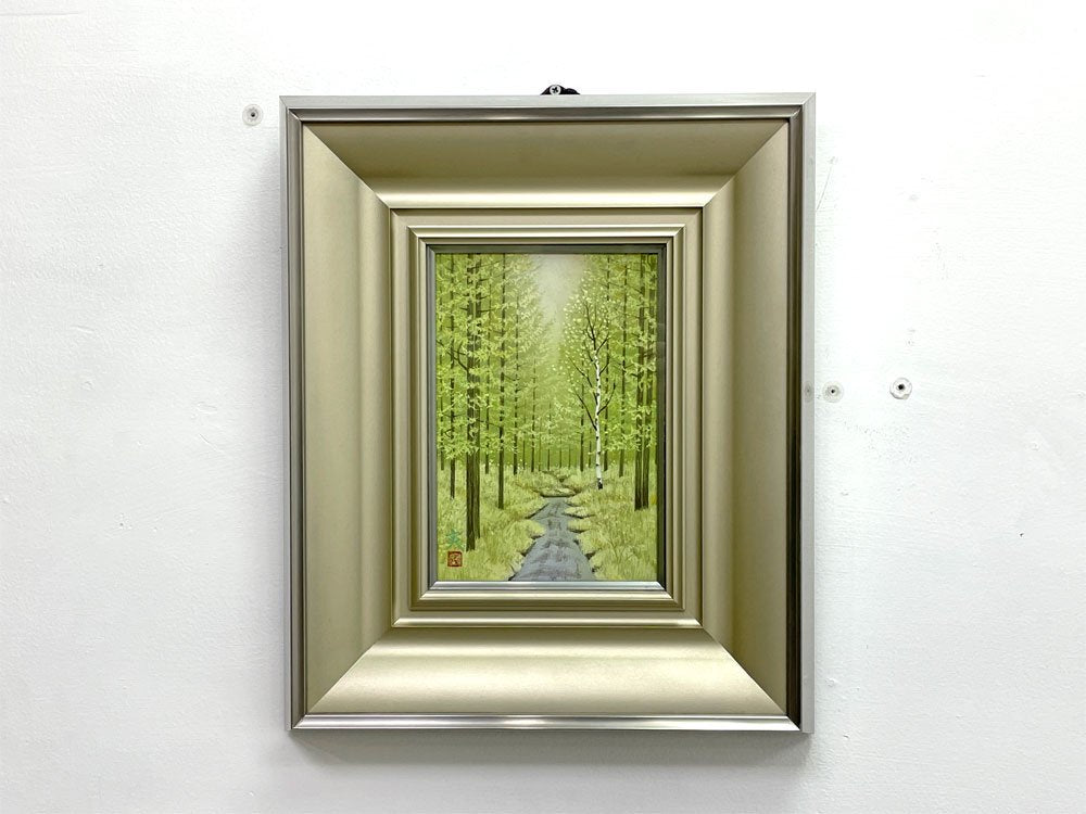 沢田実 日本画 からまつの道 風景画 アートフレーム 額装品 共箱付 日展会友 ●