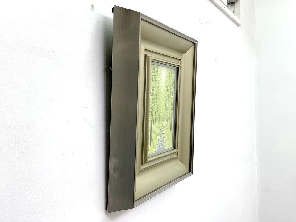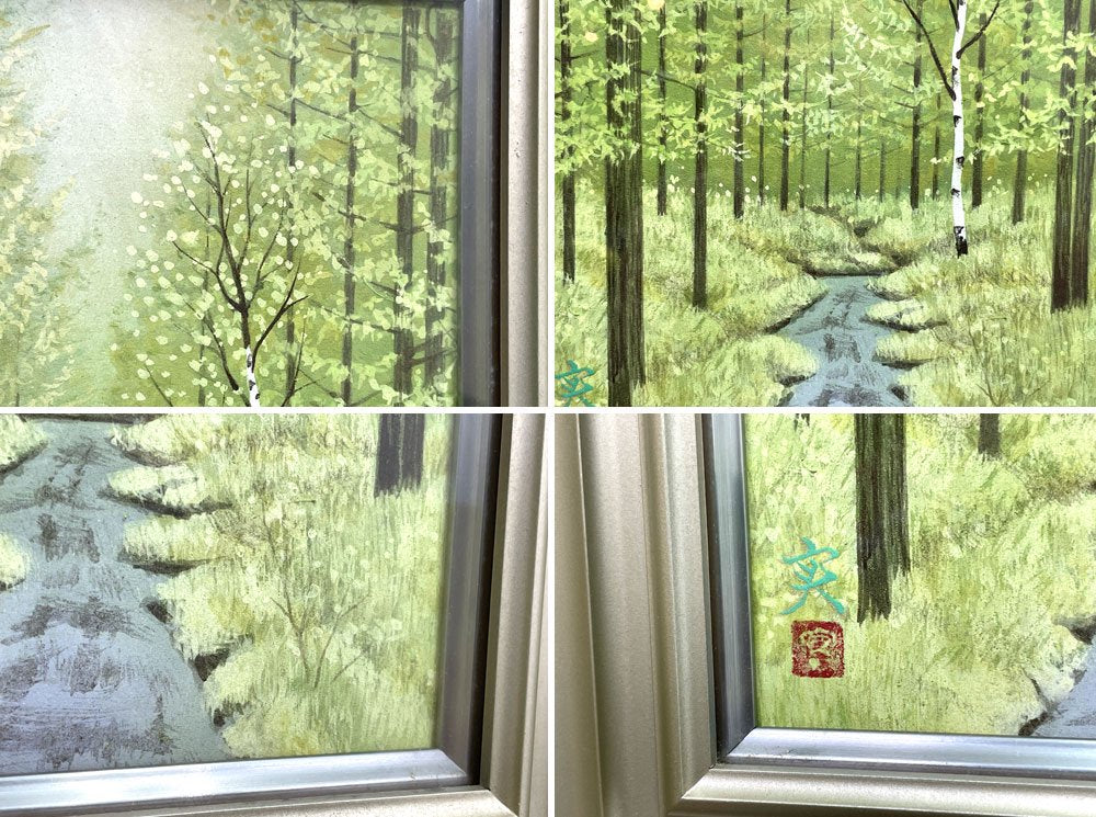 淡い色彩ながら青々とした草木の雰囲気が良く表現され、額装は中心に向かうパースと良くマッチしています。