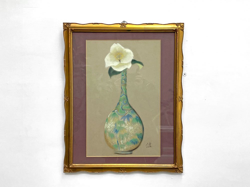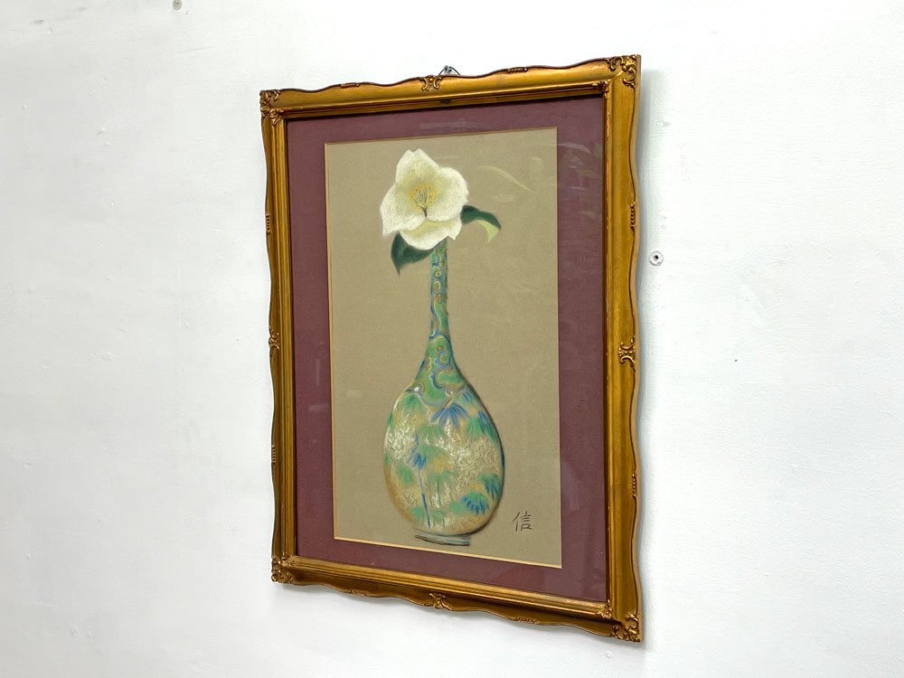 早坂信 肉筆画 椿 パステル 日本画 額装品 ●
