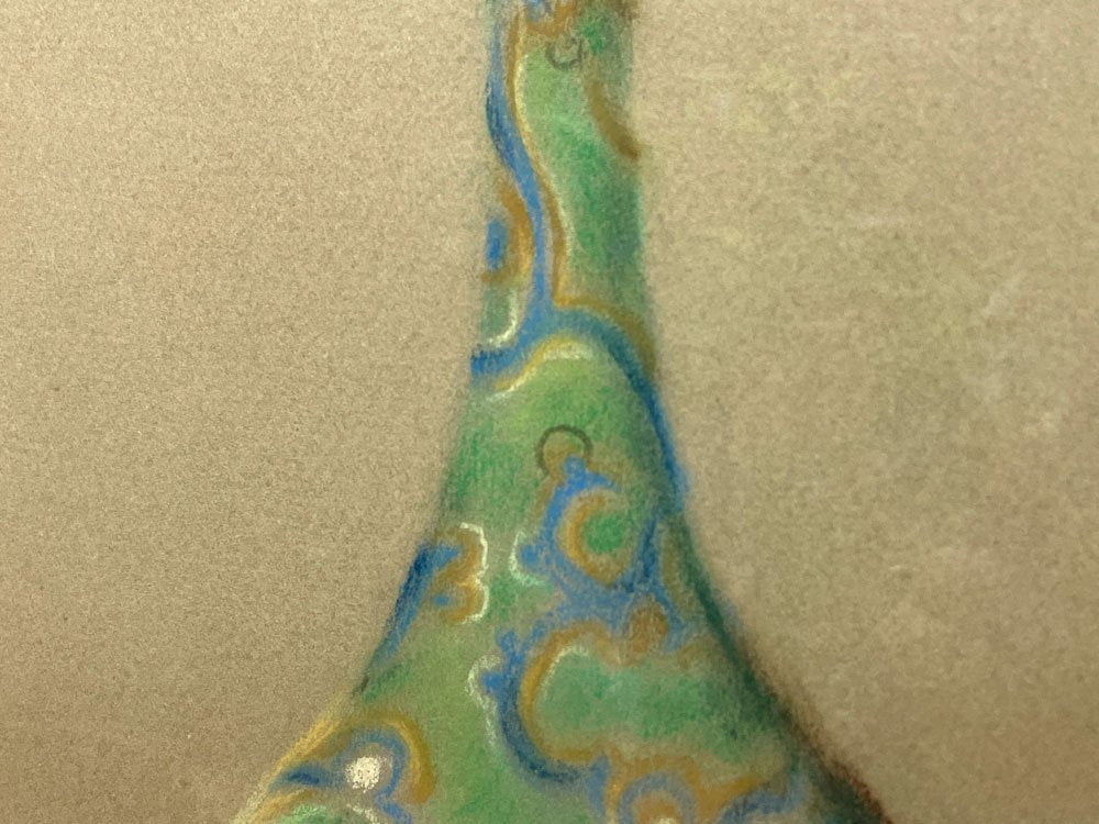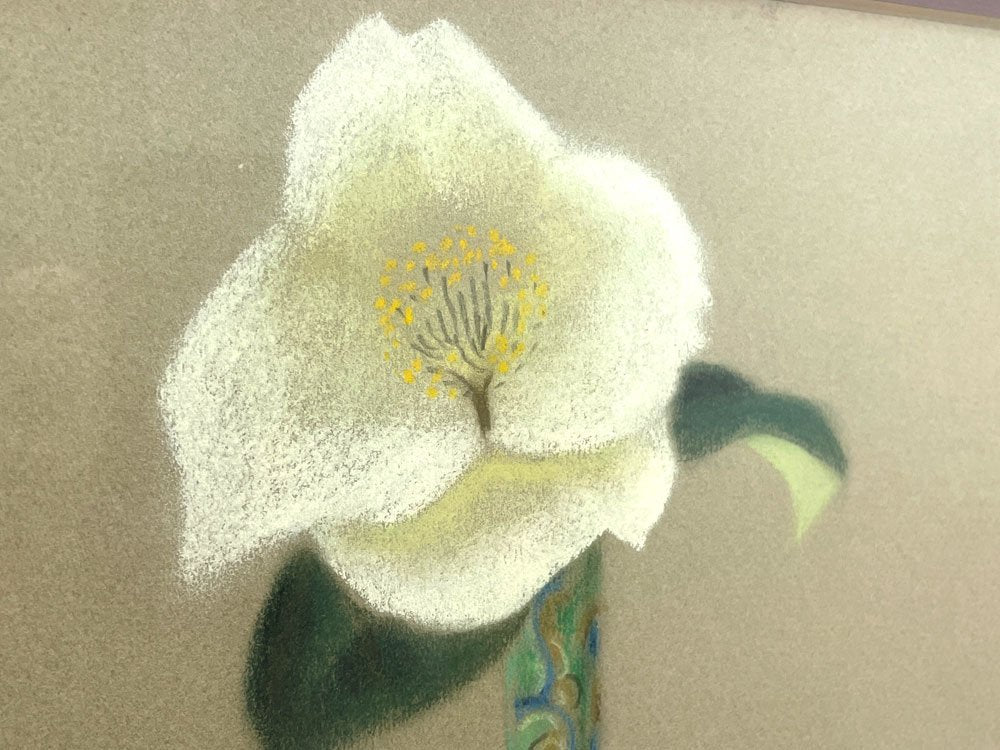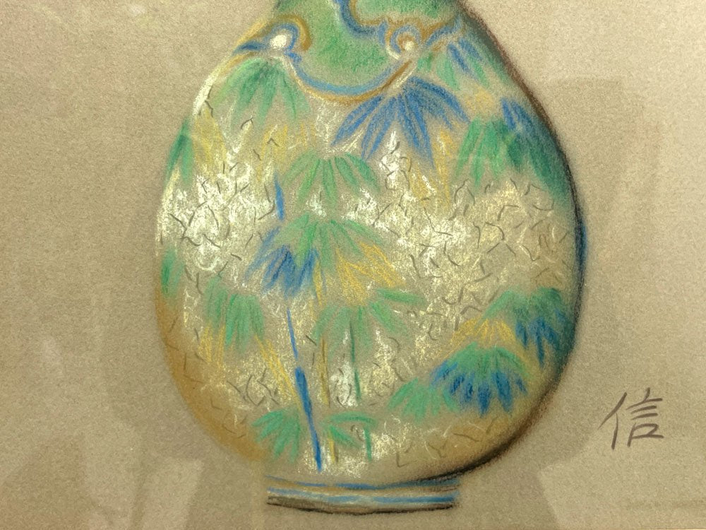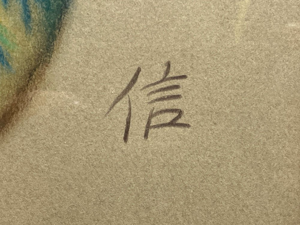 パステルのような画材または日本画材料で描かれた肉筆画と思われる作品です。