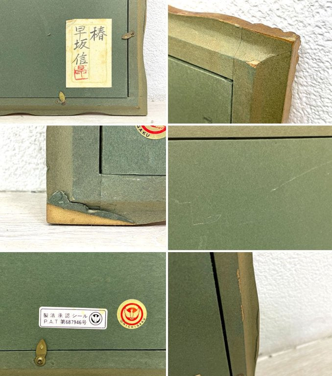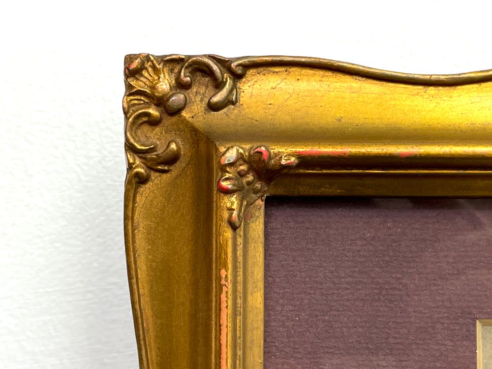 小傷や微細な打痕が散見され、フレームにはくすみが見られます。また、背面には擦れに伴う縁の捲れや剥がれ、日焼けによる色褪せ、ネジ穴が確認できますが、作品には大きなダメージは見られず、これからもお楽しみ頂けるコンディションかと思います。