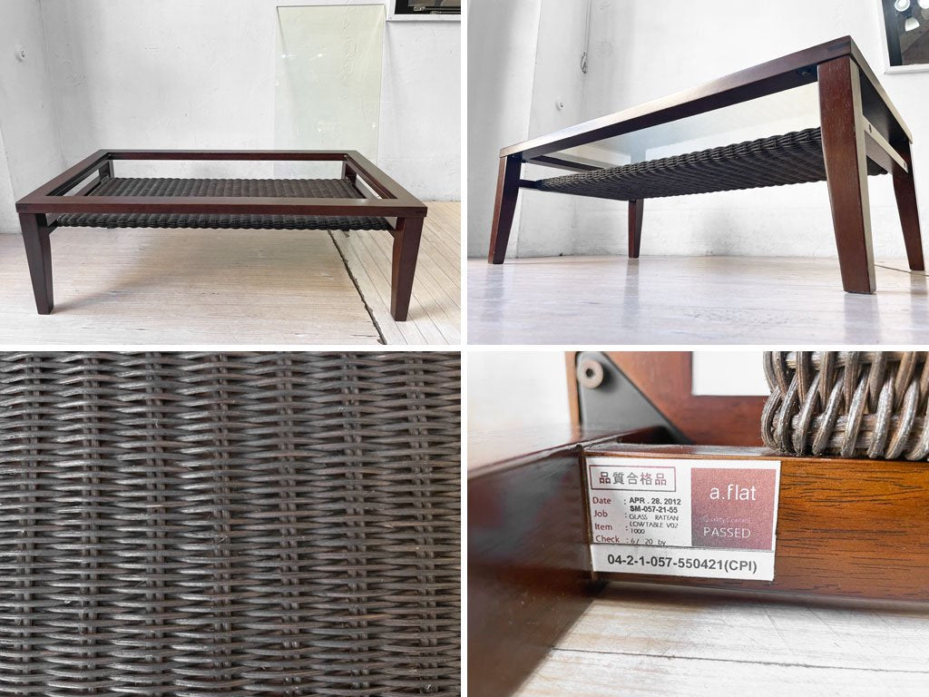 エーフラット a.flat ケイ KEI ローテーブル センターテーブル ラタン ガラストップ W100cm アジアン家具 定価¥52,360- ★