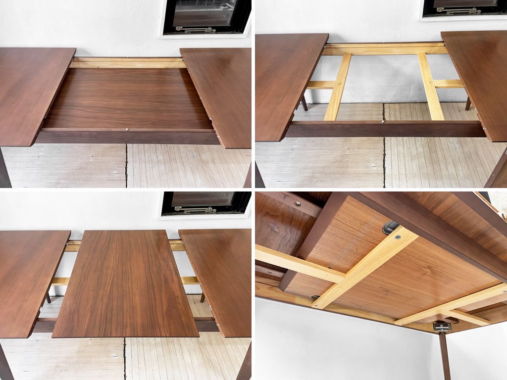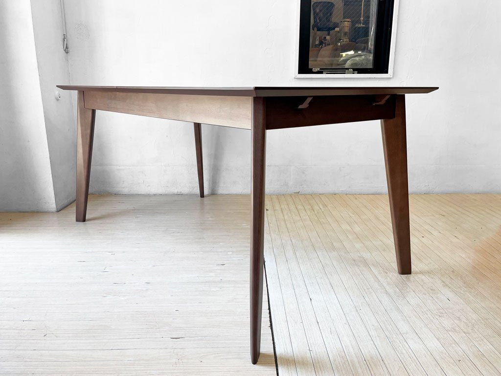 ウォールナット材を使用した伸長式のダイニングテーブル。