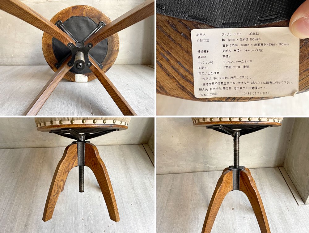 クラッシュゲート CRASH GATE ノットアンティークス Knot antiques ファソラ FASOLA チェア キャンバス地 オーク無垢材 回転昇降 廃番 ♪