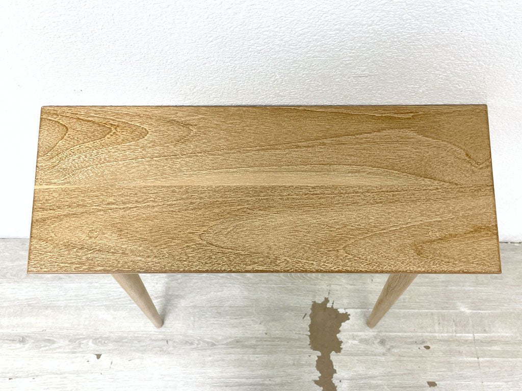 “どんなお宅にも上品に溶け込み、シンプルで置く物を引き立てる”をテーマにデザインされた木製コンソールテーブル。
