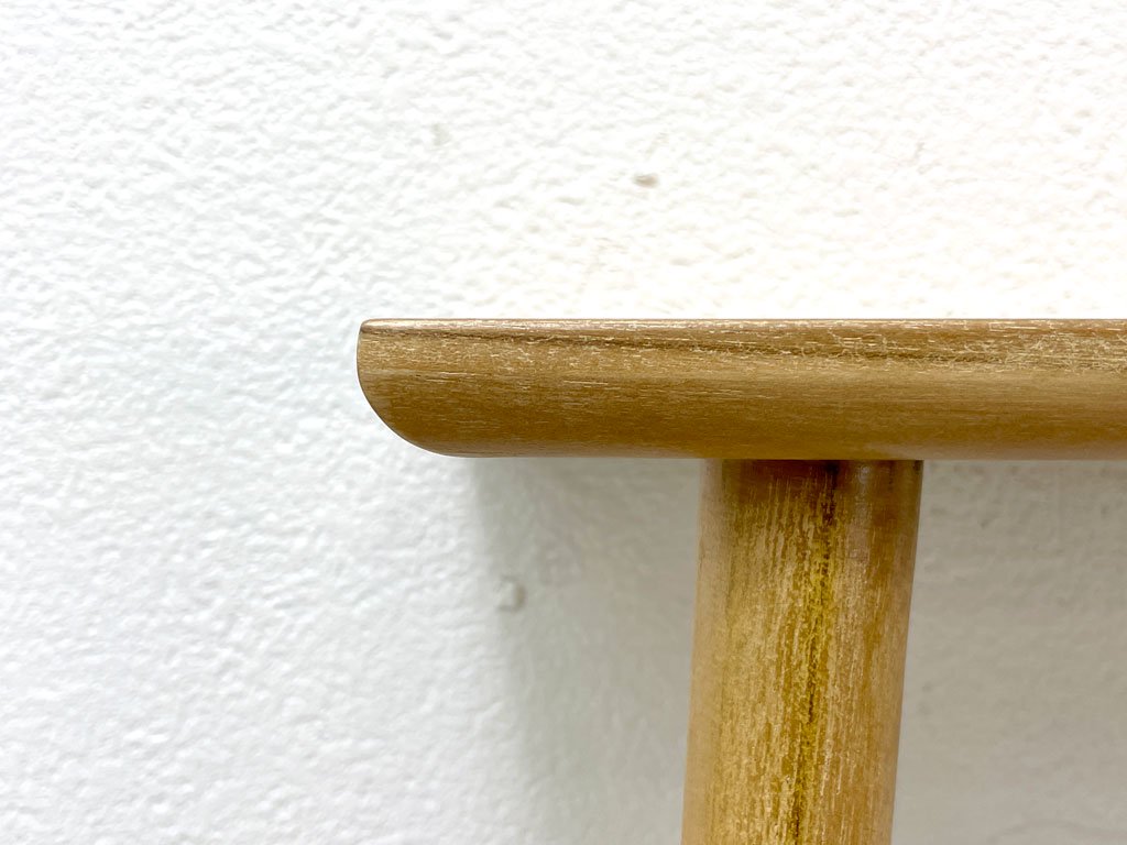 フレームにはきめ細かな木目により「木の宝石」の異名を持つ世界三大銘木のひとつチーク材を使用し、北欧家具の様なハノ字にひろがるスッキリとしたフォルムが素材の質感をより際立たせています。同シリーズにはワックス仕上げとエイジング仕上げがございますが、今回は木目が際立つ明るい色味とザラザラとした肌触りに仕上げたエイジングモデルになります。サンドブラスト加工を施し、木目に沿った凹凸を再現する事で、古材家具の様な味わい深さを感じさせてくれます。