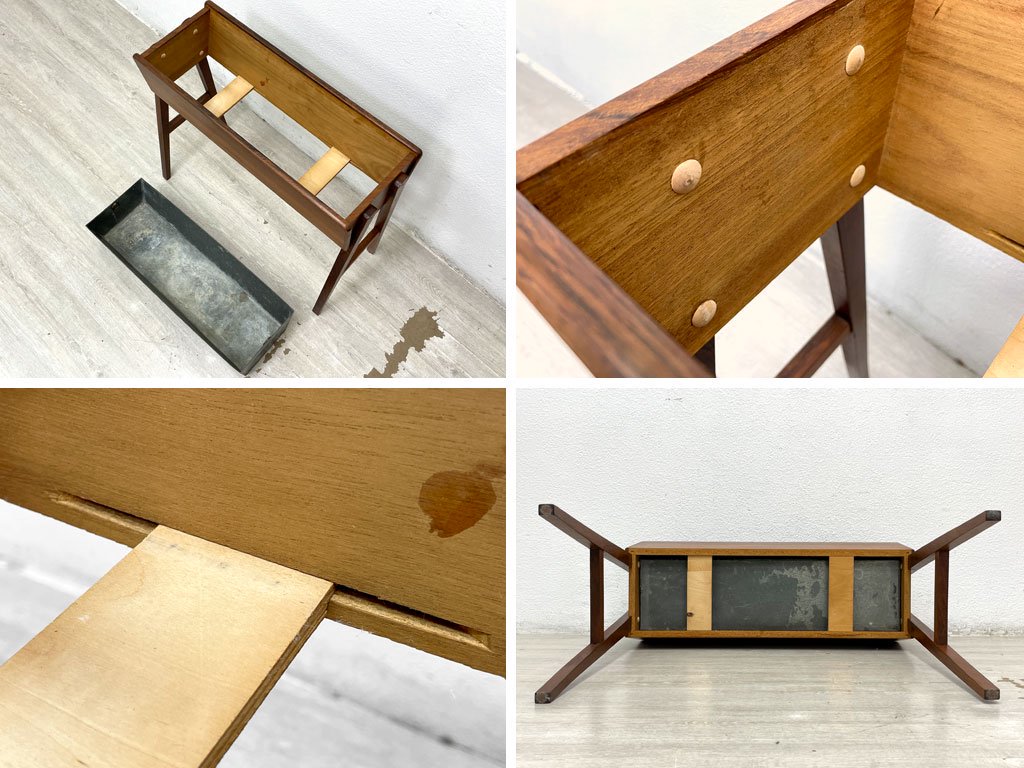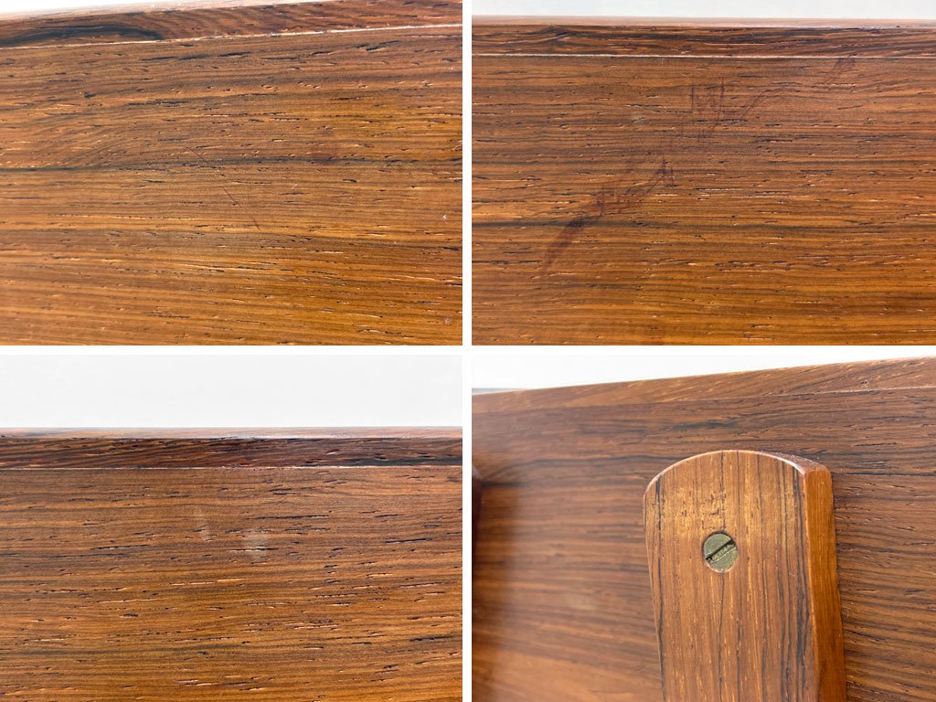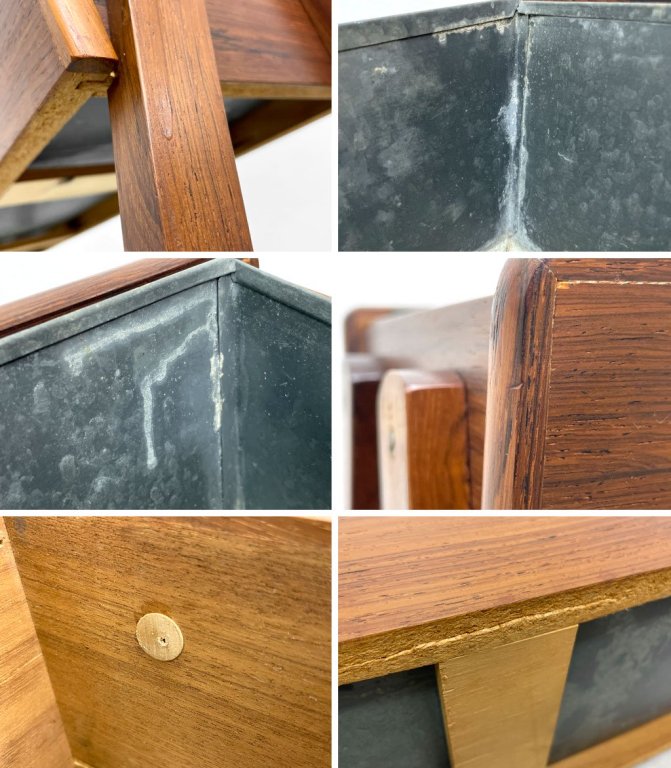 「ちょっと北欧のビンテージ家具を加えてみたい。」という方にも取り入れやすいプランタースタンドは、チーク材の物を多く見る事がありますが、今回は濃い目の色合いとはっきりとした杢目が印象的な高級家具材ローズウッドを使用した珍しい逸品です。