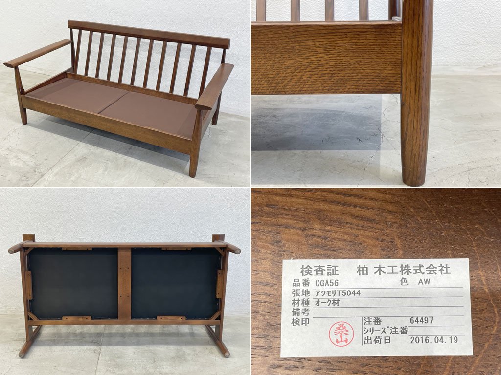 柏木工 KASHIWA シガーロ 2シーター ソファ ファブリック カバーリング オーク無垢材 楢材 飛騨家具 美品 〓