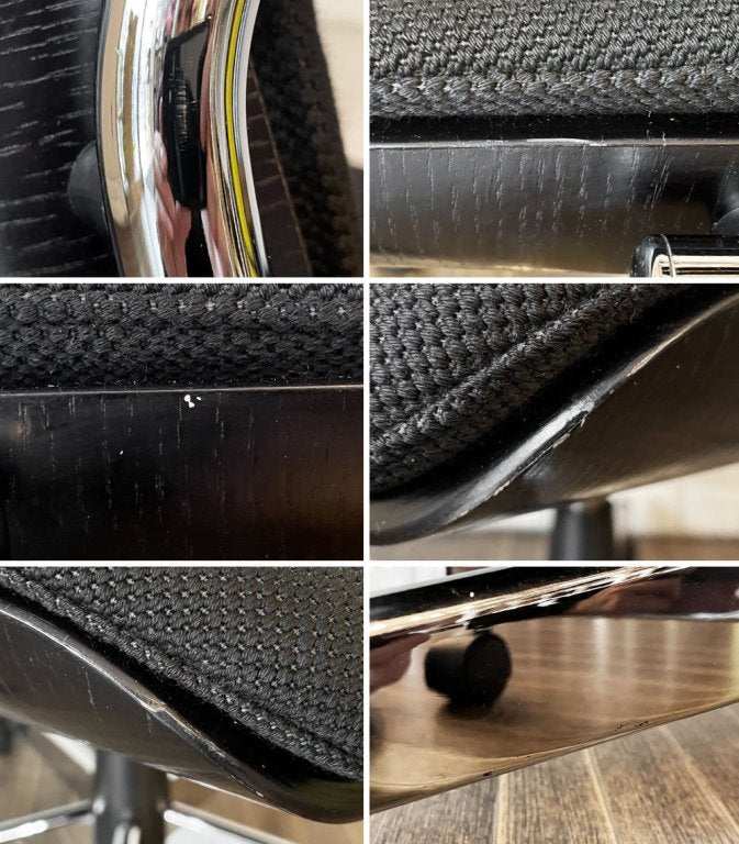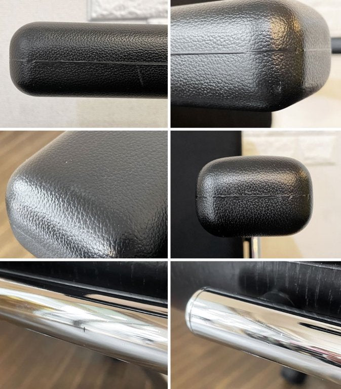 使用に伴い、プライウッドには擦れや傷、縁の削れ、くすみ等が見受けられます。また、アームには若干の擦れ傷や打痕、脚部には細かな擦れや傷などがございますが、ご使用に支障となるダメージはございません。ファブリックに目立った汚れなどもなく、これからも気持ちよく実用いただけるコンディションを保っております。