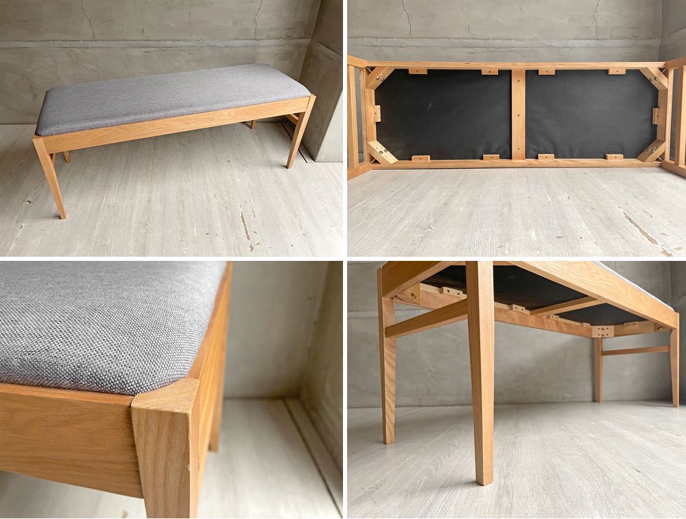 ビーカンパニー B-Company アッシュ材 ダイニングベンチ 2人掛け ファブリック グレー系 ♪