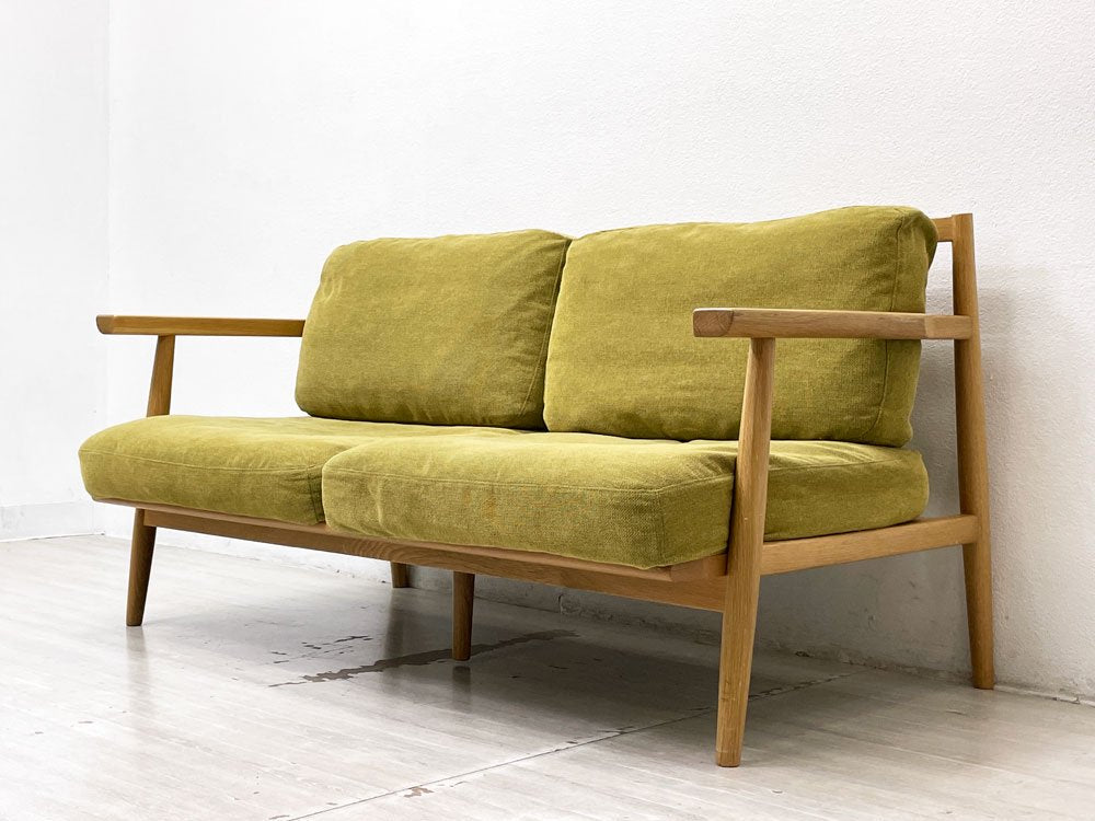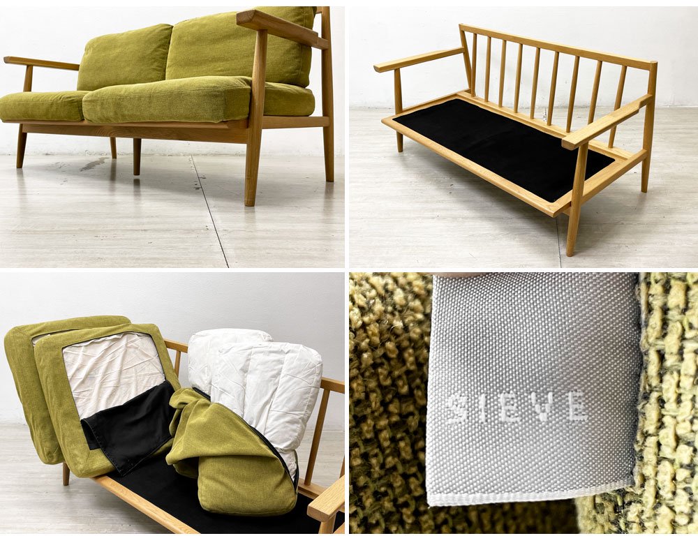 シーヴ SIEVE カバーリングソファ 2シーター グリーン系ファブリック オーク無垢材 北欧スタイル 廃番 ●