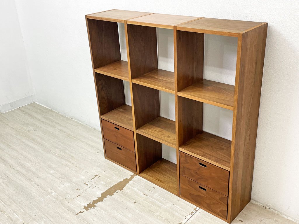 無印良品 MUJI スタッキングシェルフ ウォールナット材 オープンシェルフ 本棚 飾り棚 スタッキングチェスト×2 抽斗収納 定価¥58,880- ●