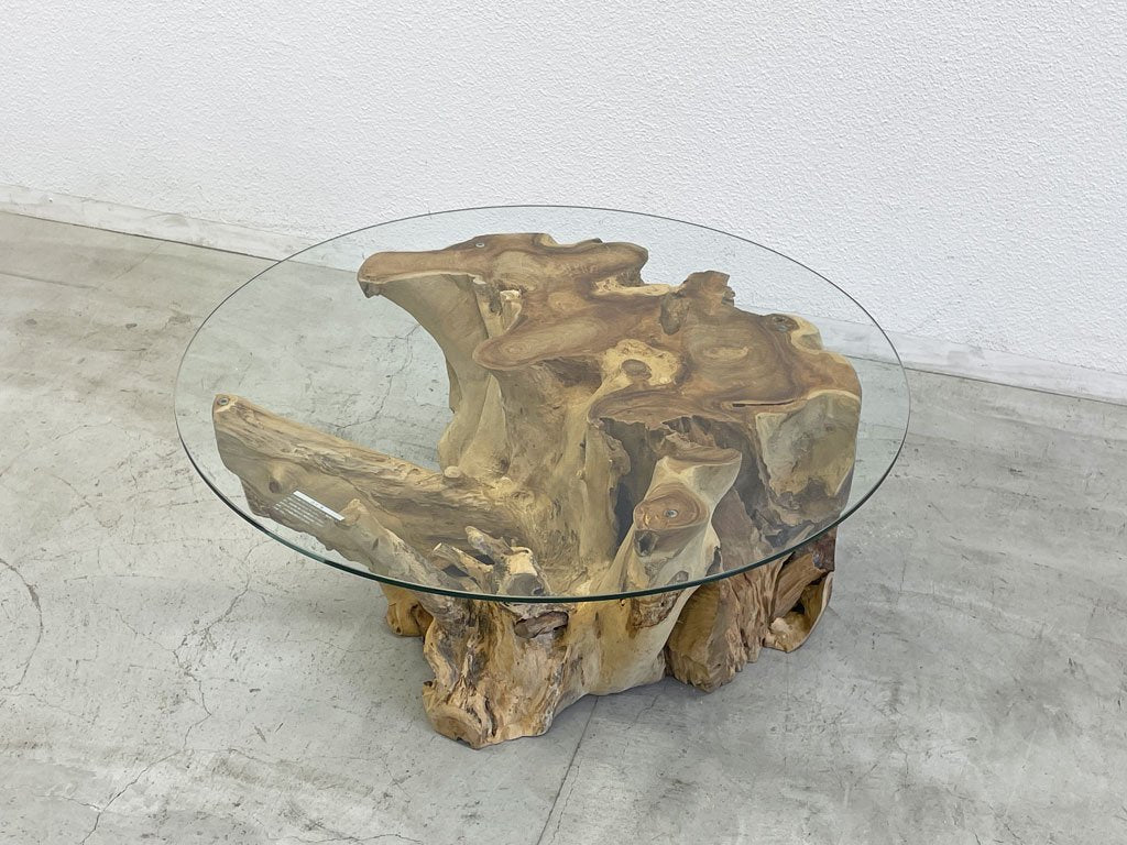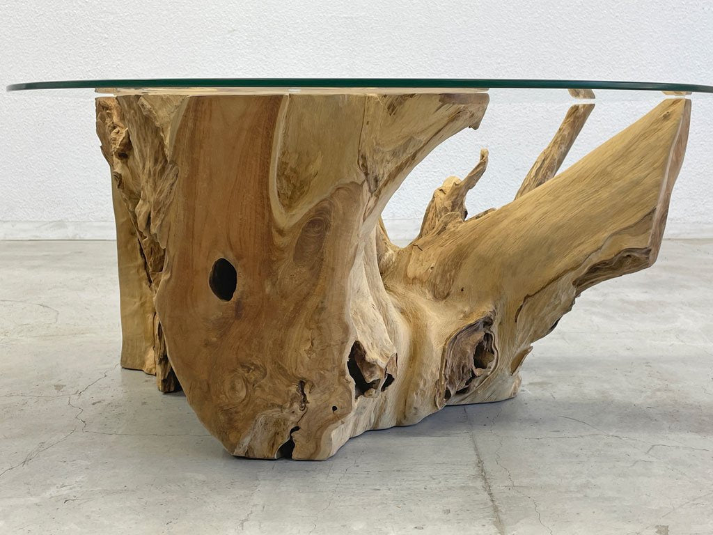 インドネシア産のチークウッドをそのままデザインにしたユニークでオシャレなコーヒーテーブル。