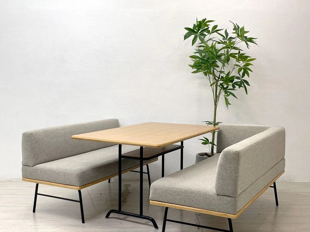 L字型のベンチは従来のダイニングチェアと異なり、座る位置を限定しない為、使用人数の融通が利きやすいメリットがあります。ファニートは、直線を基調としたシンプルなデザインながら、オーク材突板とブラック塗装のスチールフレームが、程良くメリハリの効いた空間づくりを可能にします。カフェスタイルの様なカジュアルさを内包し、どことなくノスタルジックな雰囲気も同居するデザイン。細身のスチールフレームが足元にスッキリとした印象を与え、快適な生活空間を演出してくれます。