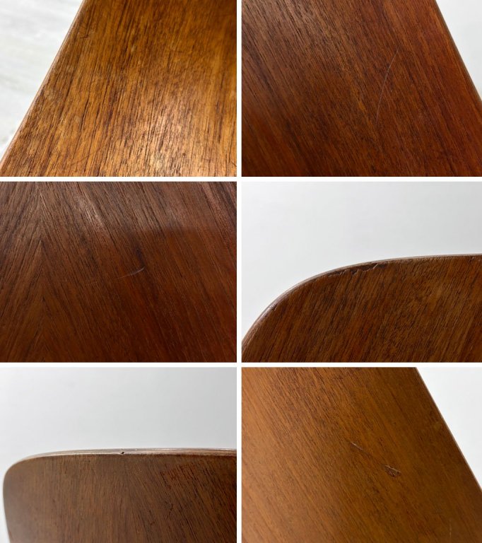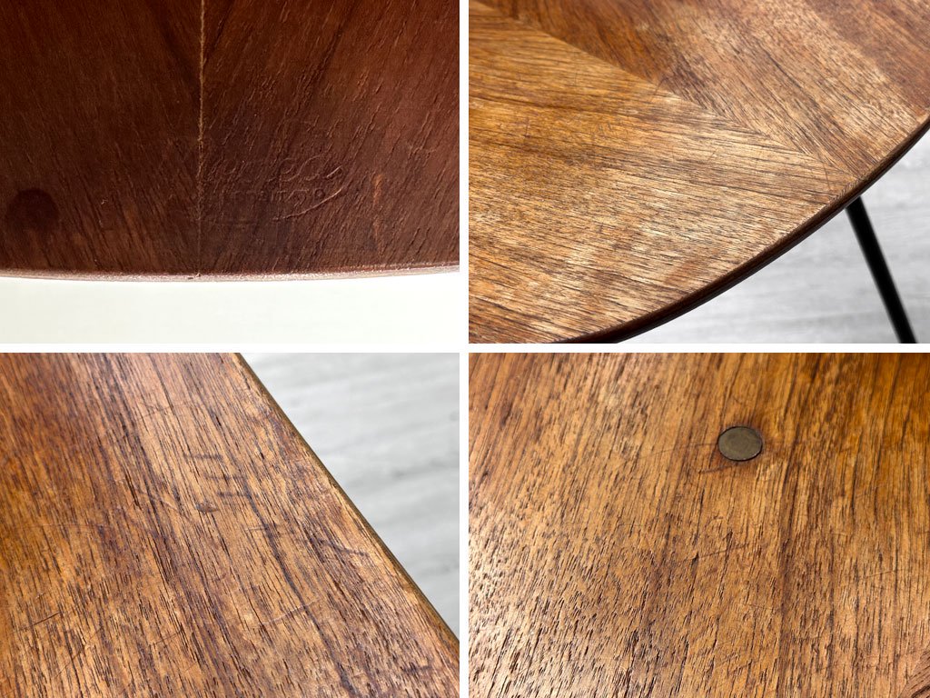 こちらはビンテージ品となります。経年に伴う擦れや傷、一部成形合板の剥がれ、色褪せ、金属部分の錆びやくすみなど、全体的にビンテージ感が感じられる風合いのあるコンディションです。ガタツキやグラつき等はなく、使用に影響するような大きなダメージはございません。