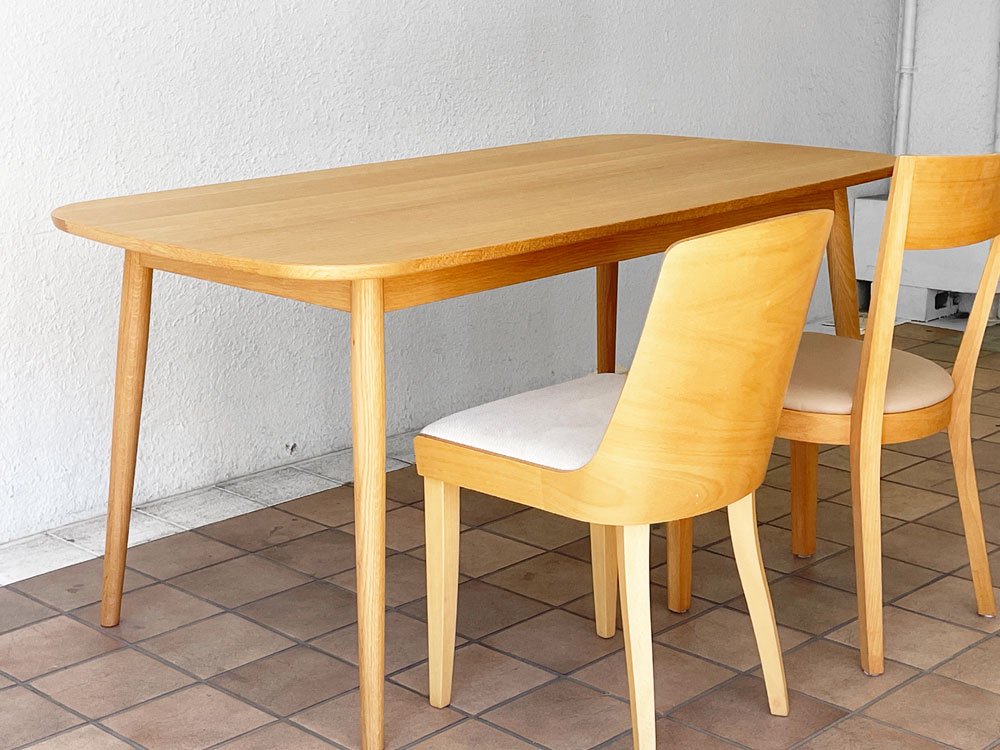 無印良品 MUJI オーク無垢材 ダイニングテーブル オーバル 丸脚 ナチュラル W150cm 廃盤 美品 ◇