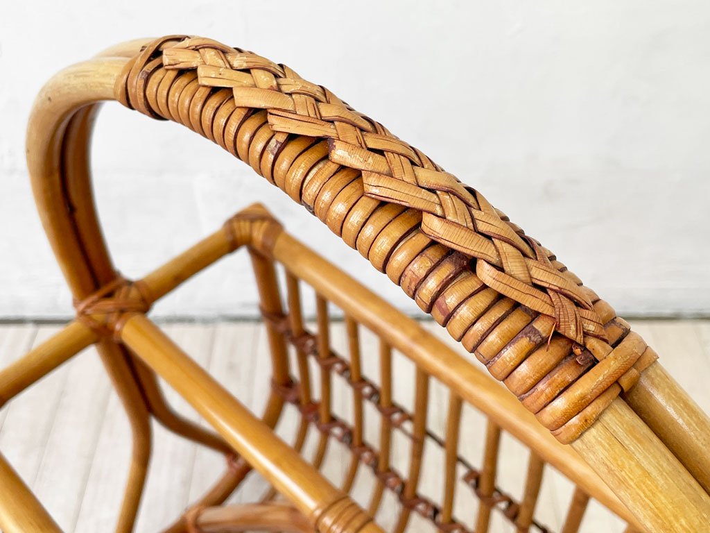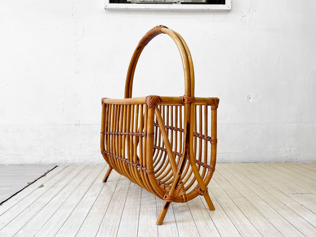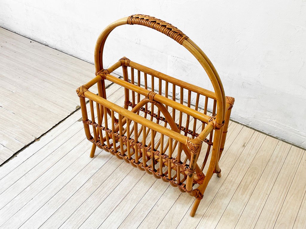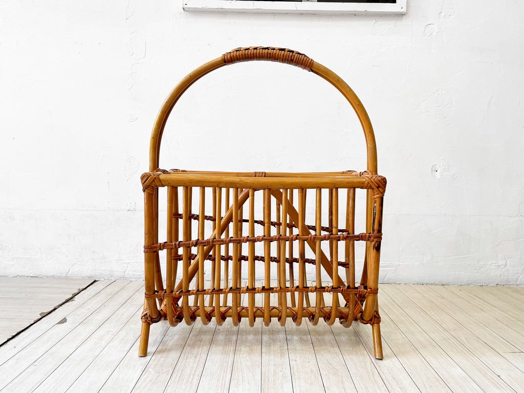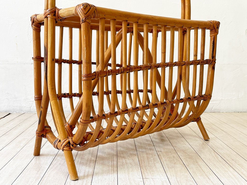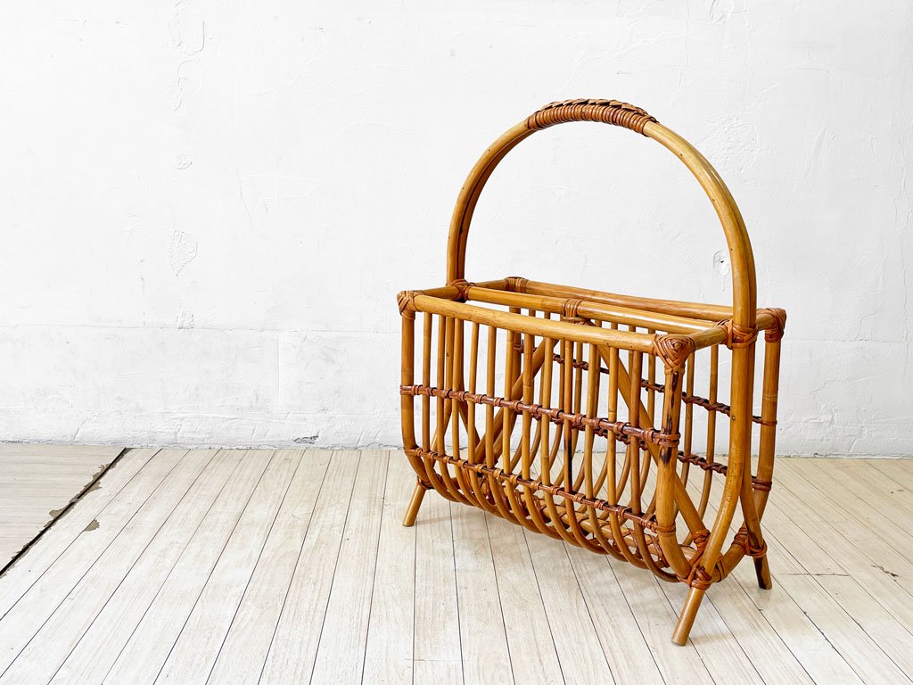 ナチュラルスタイルの空間からビンテージのアイテムとも相性の良い、雰囲気たっぷりのラタンマガジンラックとなっております。