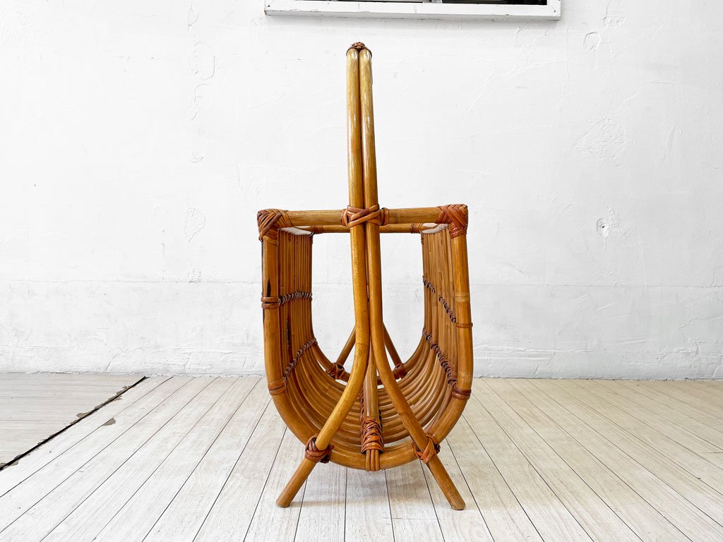 ビンテージ ラタン マガジンラック スリッパラック 籐編み レトロ ★