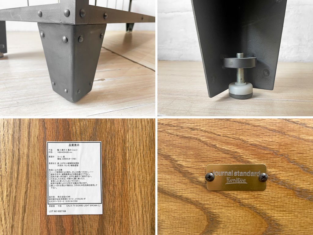 ジャーナルスタンダードファニチャー j.s.F カルビ CALVI テレビボード AVボード Lサイズ スチール オーク無垢材 W148cm ★