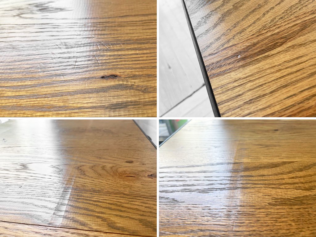 こちらはビンテージ加工が施されたお品物となります。天板には僅かな傷や擦れ、凹凸や色ムラ、フレームにクスミや錆、ペイントロスなどがございますが、製造時からの仕様となります。また、天板に僅かな傷や打痕が見受けらえますが、大きく目立つダメージはございません。その他、使用に問題となるダメージも無く、USED品として概ね良好なコンディションを保っております。