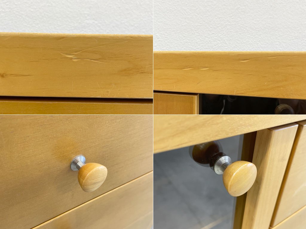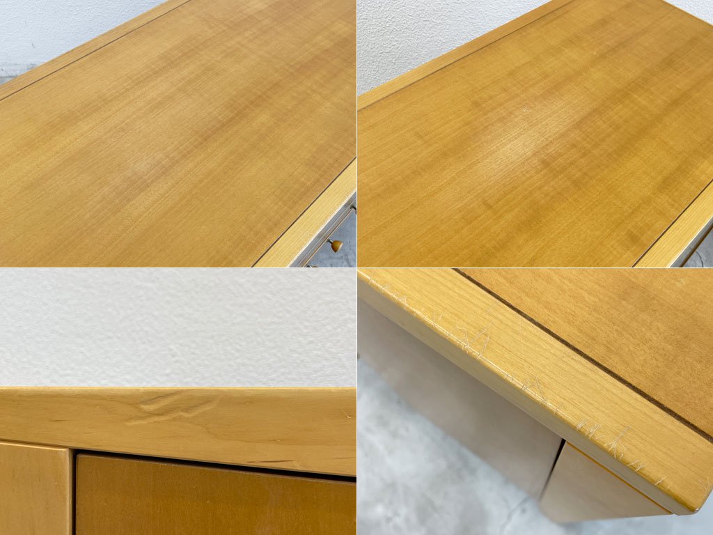 また、天板前面のエッジ付近やや目立つ凹み傷と右サイド側には擦り傷がございます。