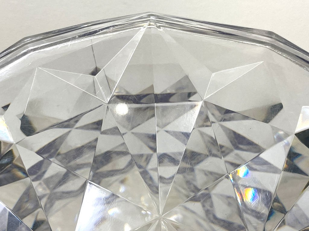 砂時計のようなシルエットに、表面に幾何学模様のような加工があしらわれた半透明のスツールは、光を反射してキラキラと輝く姿が美しい逸品です。