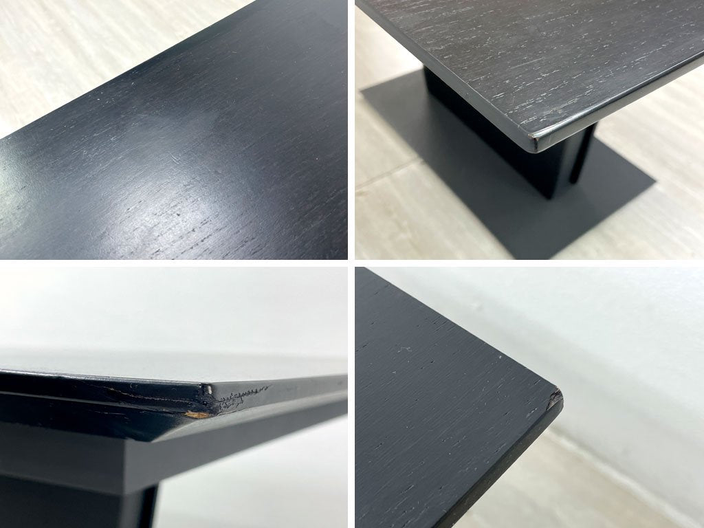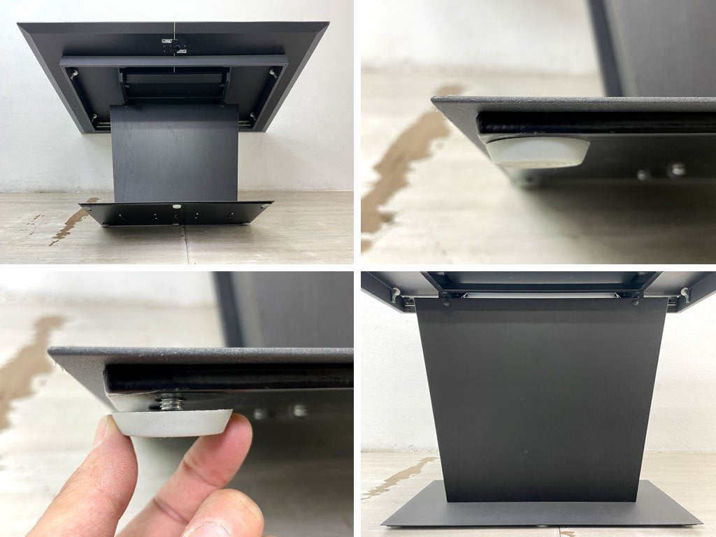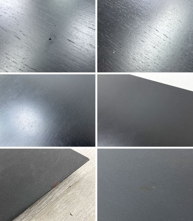 天板の各所に塗装の曇り、細かな線傷が多数見受けられ、追加天板との僅かな色合いの差が生じております。また、縁には打痕や擦れ、それに伴うペイントロスも散見されます。その他、脚部の一部に錆び生じている等、ある程度の使用感がございますが、機構に問題は無く今後も十分実用頂けるコンディションを保っております。