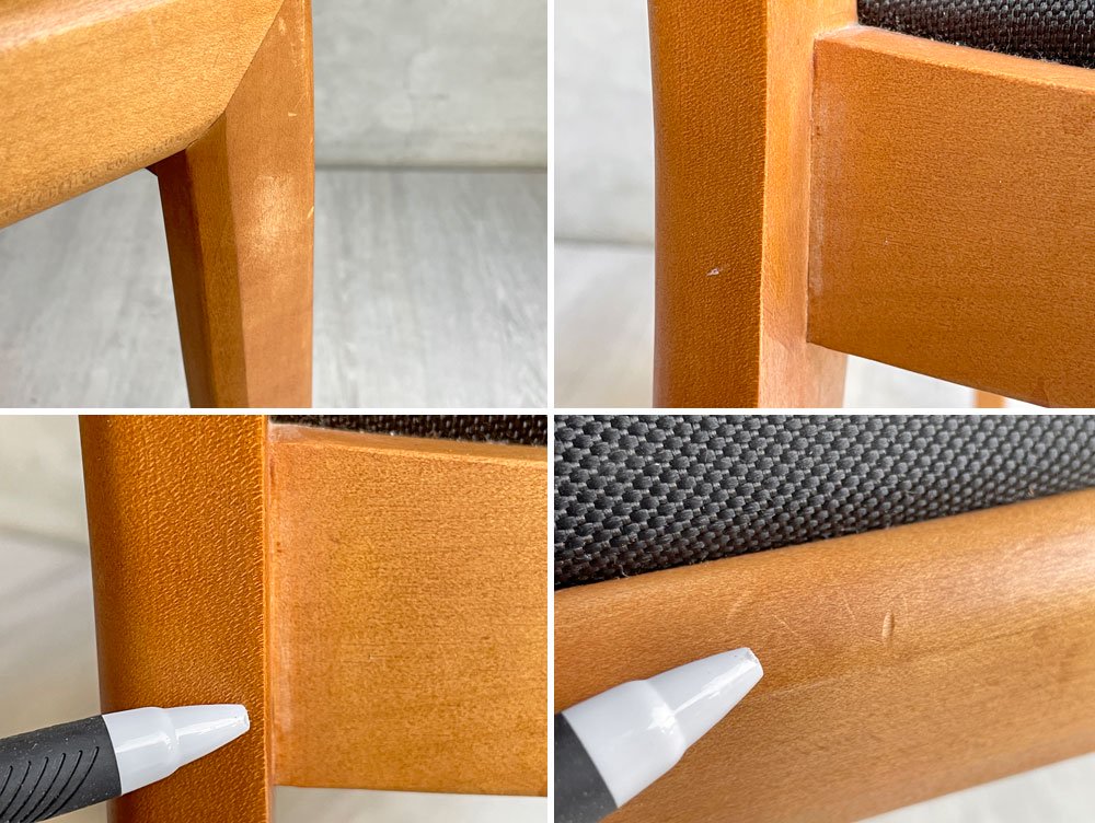 座面に白いシミが見られるほか、細かな打痕やペイントロスを伴う擦れがベース部分に散見されるものの、十分実用可能なコンディションを保っております。