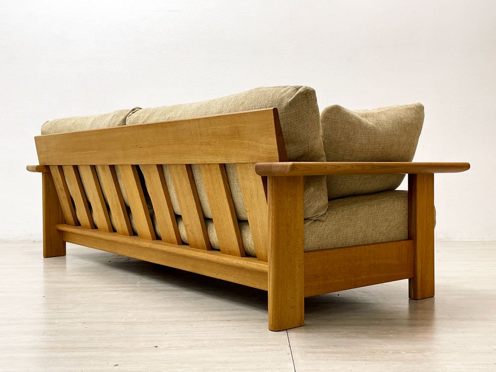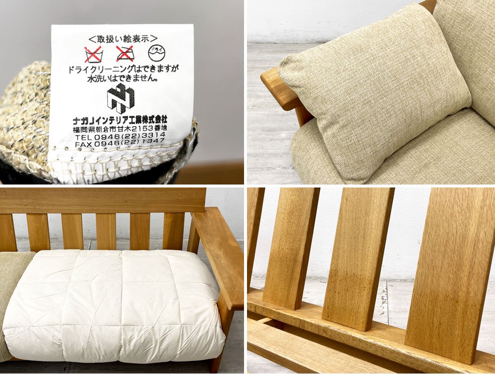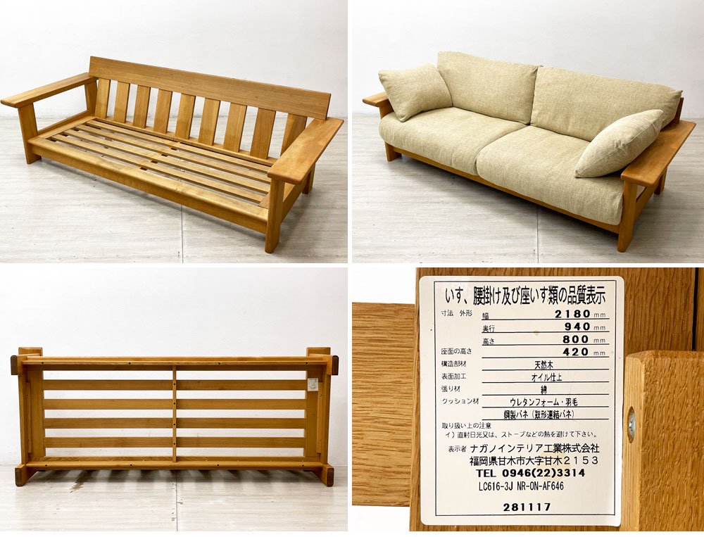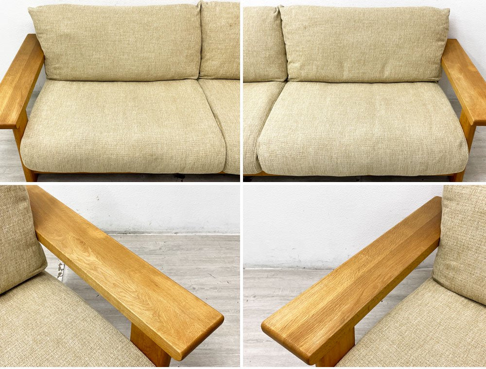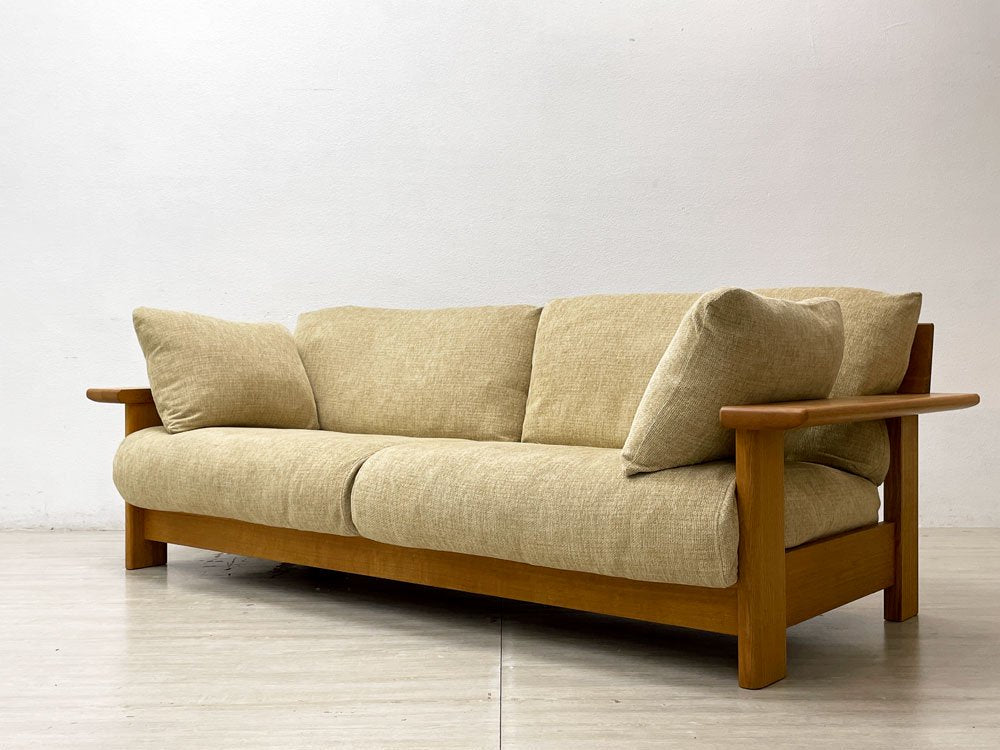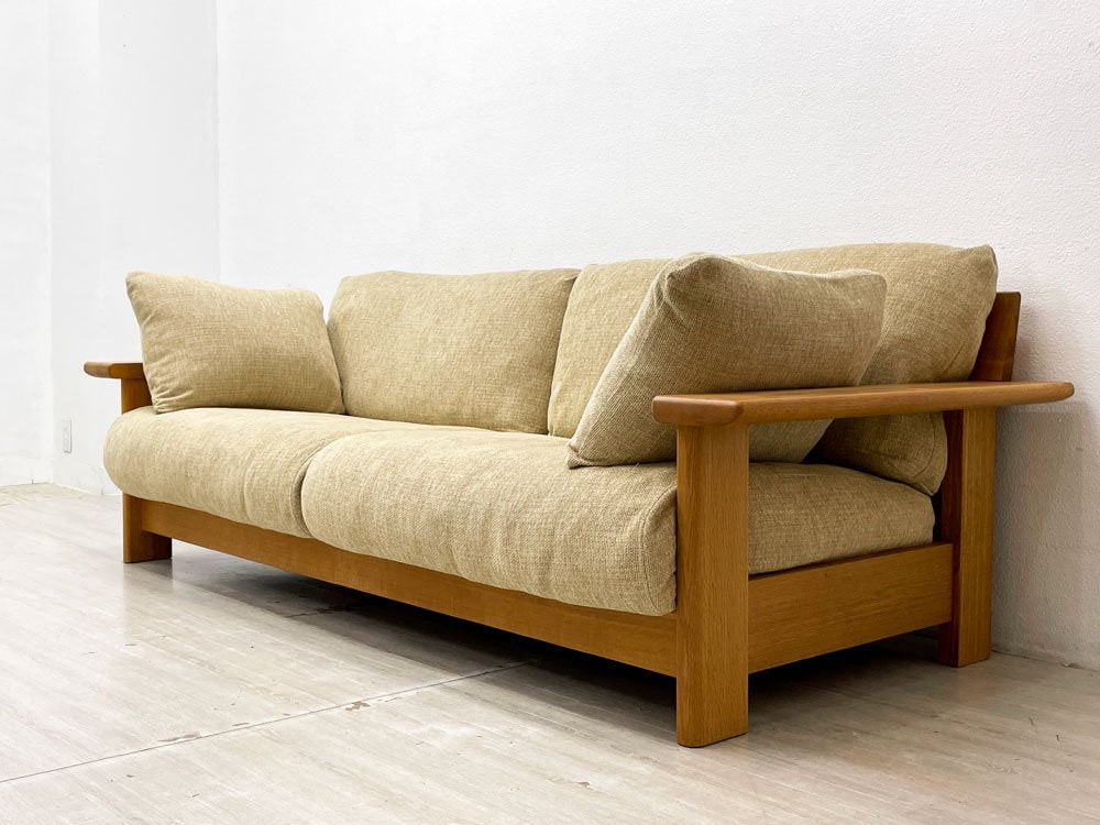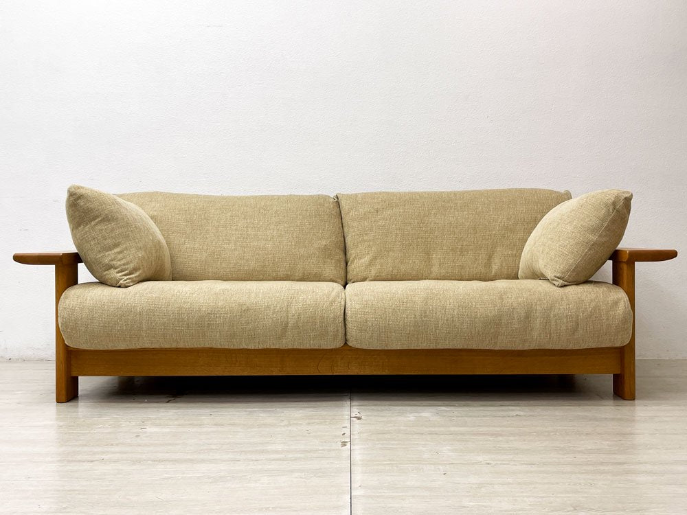 ナガノインテリア NAGANO INTERIOR リアル ランド REAL LAND LC636 3人掛け ソファ オーク無垢材 ベージュ系 定価33万円以上 ●