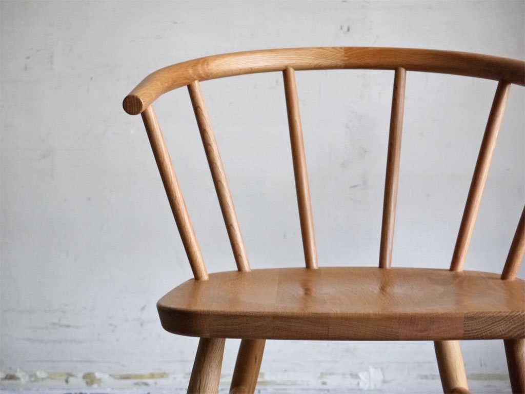 伝統的なイギリスのウィンザーチェアに北欧の要素が加わったようなユニークな魅力を持つ逸品です。