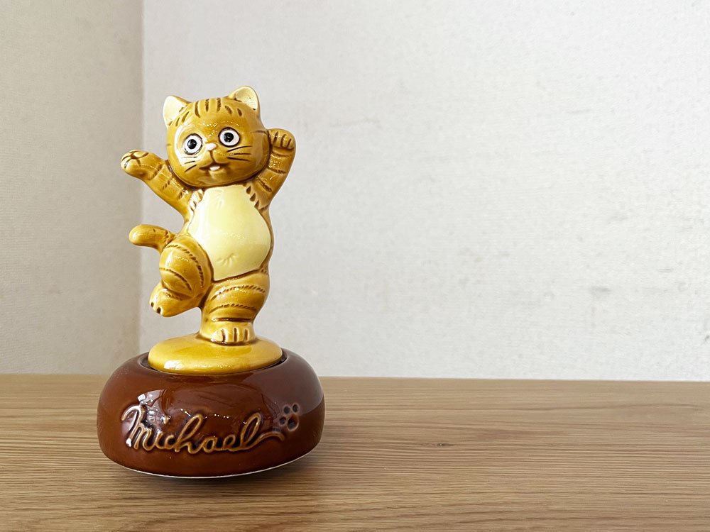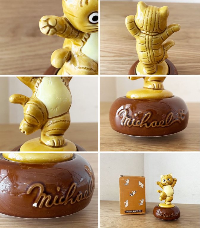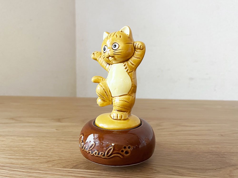 ホワッツマイケル What's Michael ? マイケルオルゴール 陶製 猫 愛のオルゴール 箱付 小林まこと TOKAI 昭和レトロ ◎