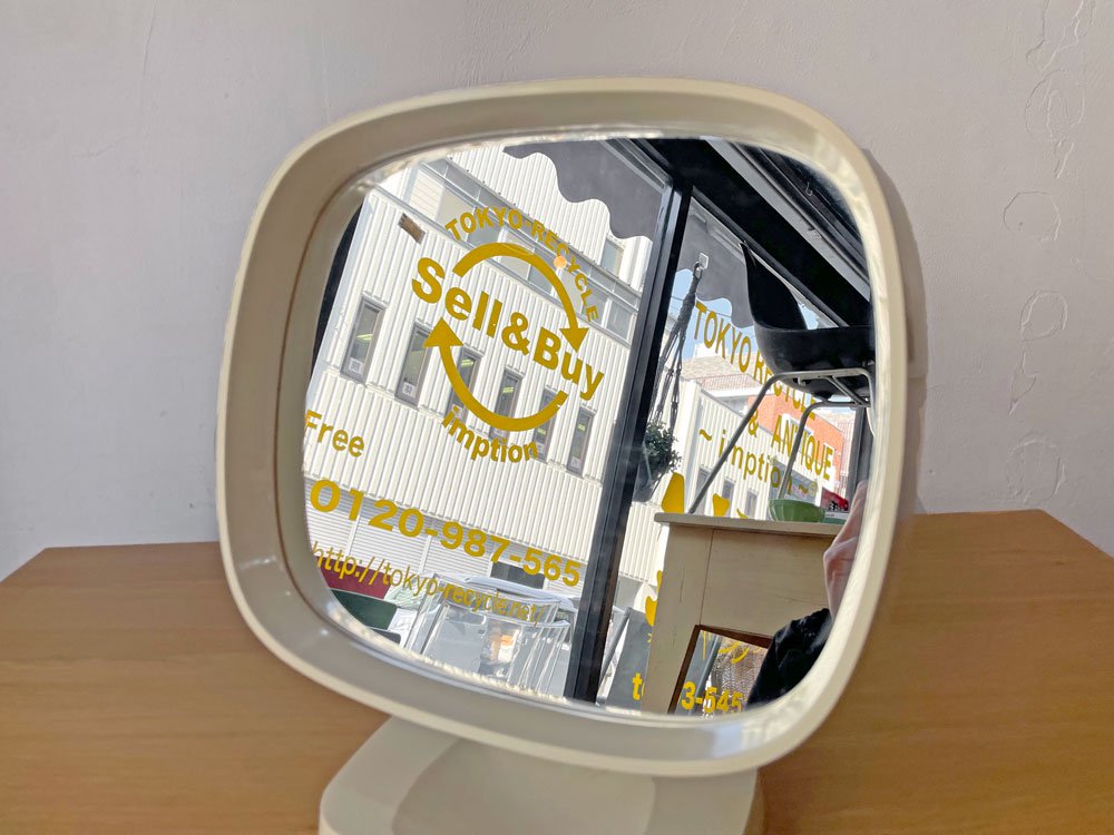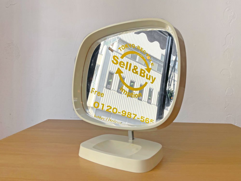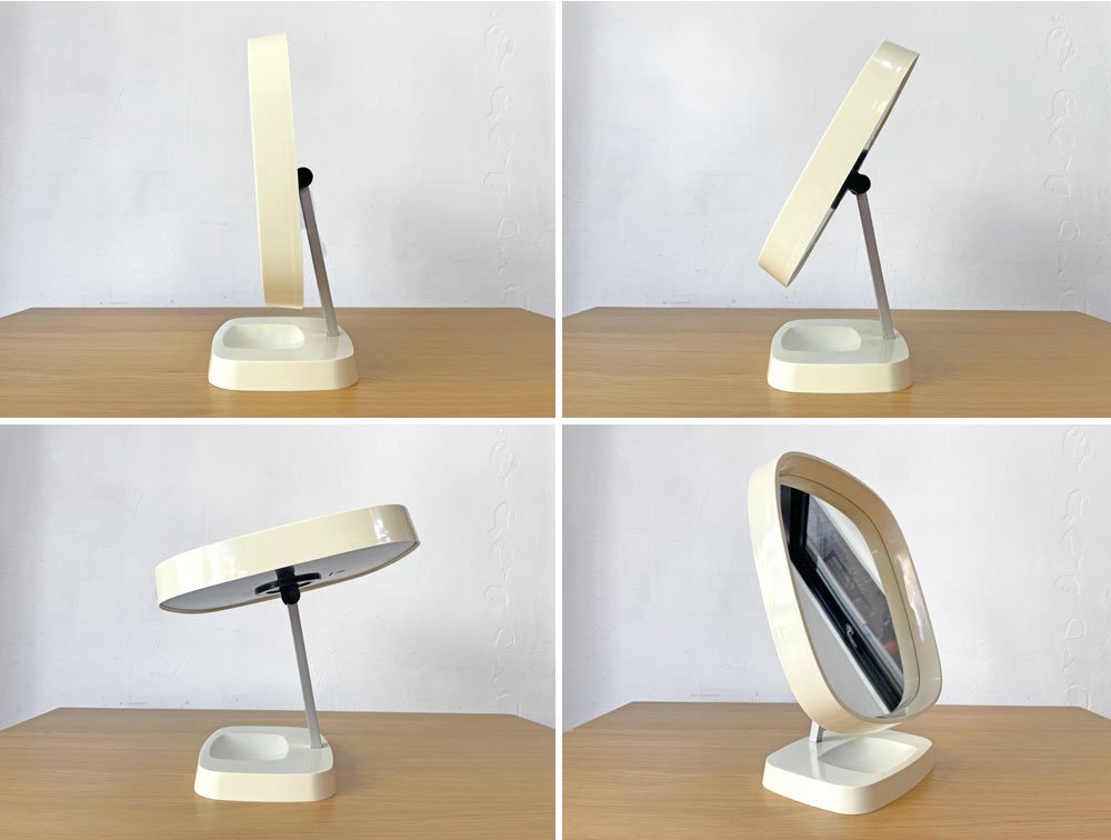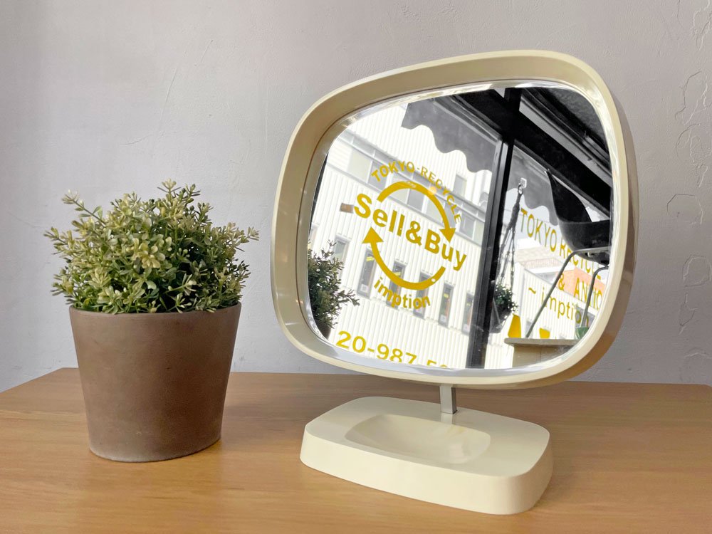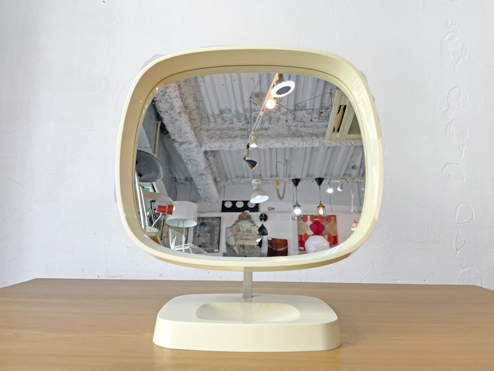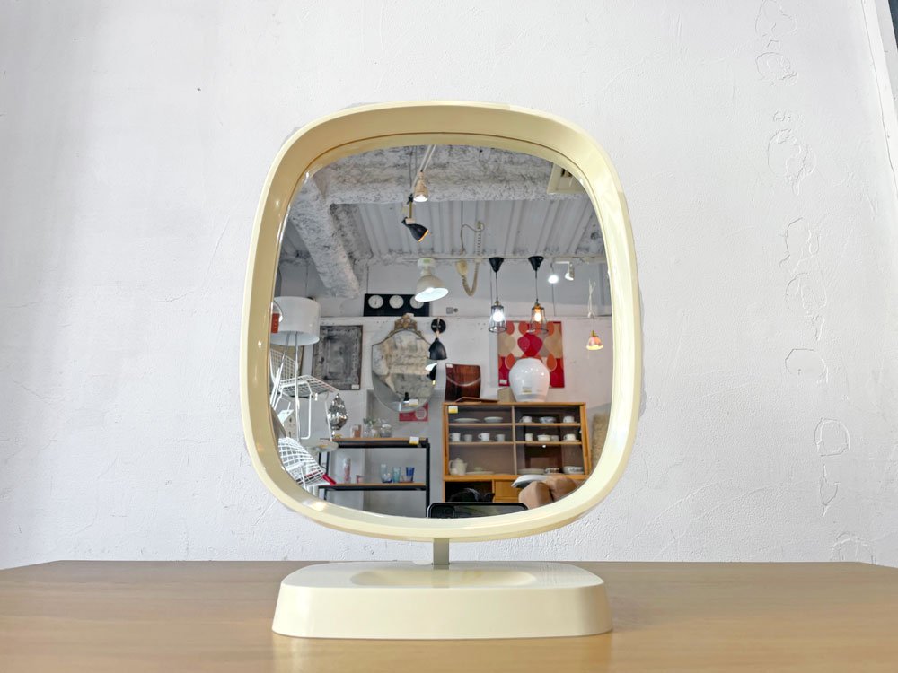 デンマークビンテージ Danish Vintage 卓上ミラー メイクアップミラー 鏡 ホワイト プラスチックフレーム スペースエイジ レトロポップ ★