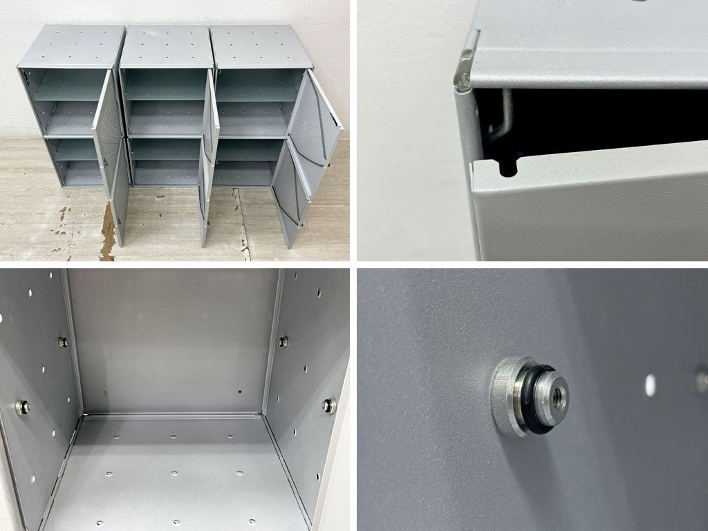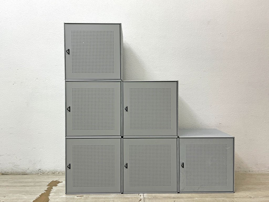 ユニットシェルフは”キューボ QBO”と呼ばれるモデル名で、組み換え自由なフレキシブルさとメタル素材にパンチング加工を施したモダンデザインが魅力。