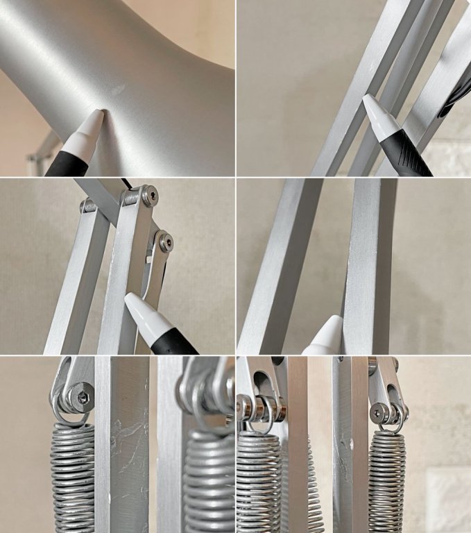 1932年、自動車のエンジニアであったジョージ・カワーダイン(1887-1947)が、サスペンション・システム用に開発したスプリング(ばね)システムのリニアなバランスを応用したことに始まったアングルポイズの照明。