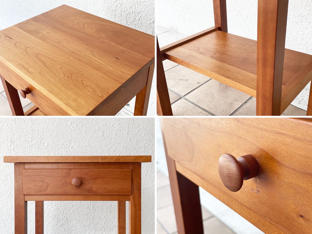 チェリー無垢材 サイドテーブル 1引き戸付き W45cm