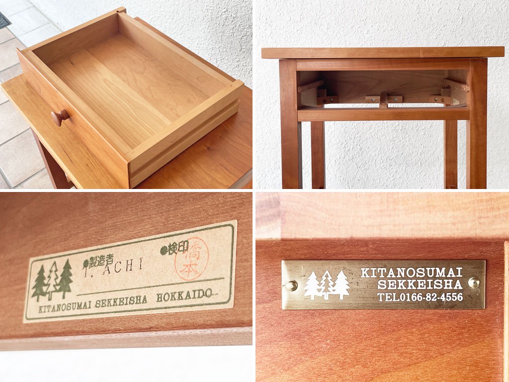 北の住まい設計社 KITANOSUMAISEKKEISHA チェリー無垢材 サイドテーブル 1引き戸付き W45cm ◇