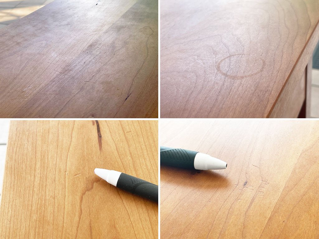 使用に伴う傷や打痕、スレや輪染み等が御座いますがどれも美観を大きく損ねるものではありません。ガタツキ等使用に問題となるようなダメージはなく、これからも気持ち良くお使い頂けるコンディションを保っております。