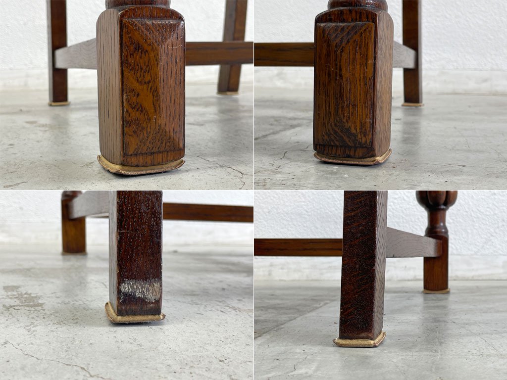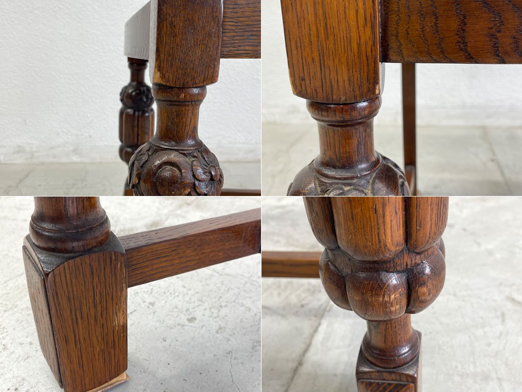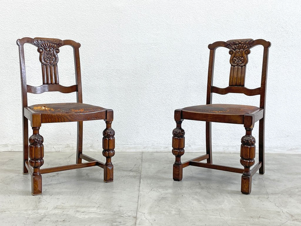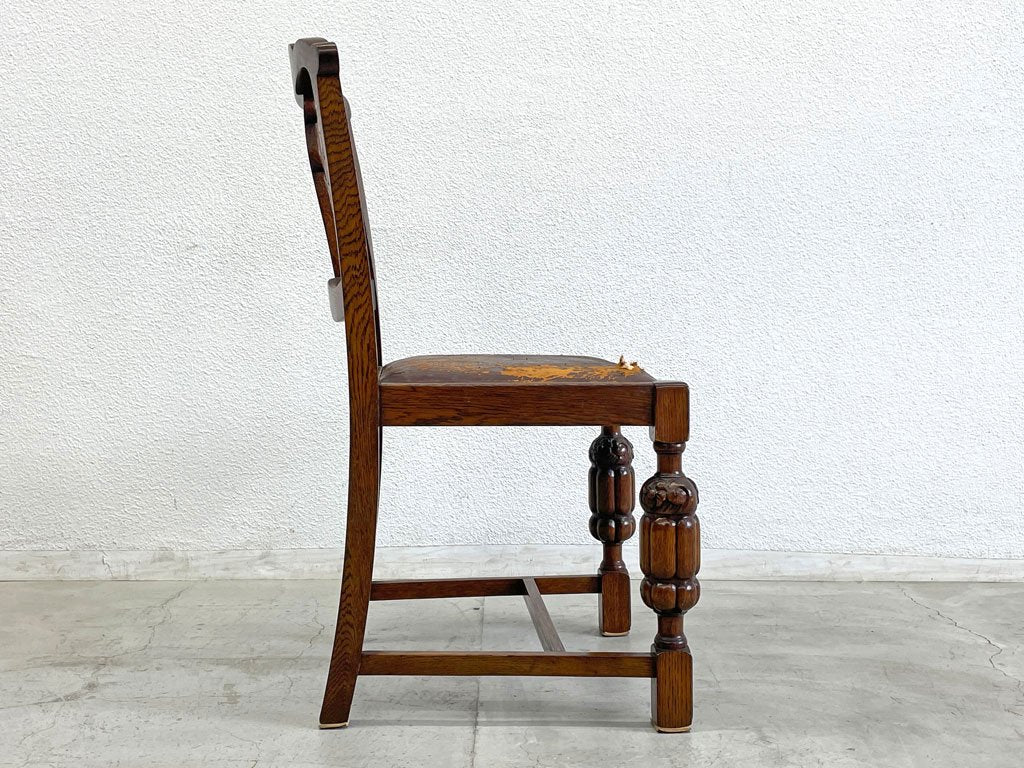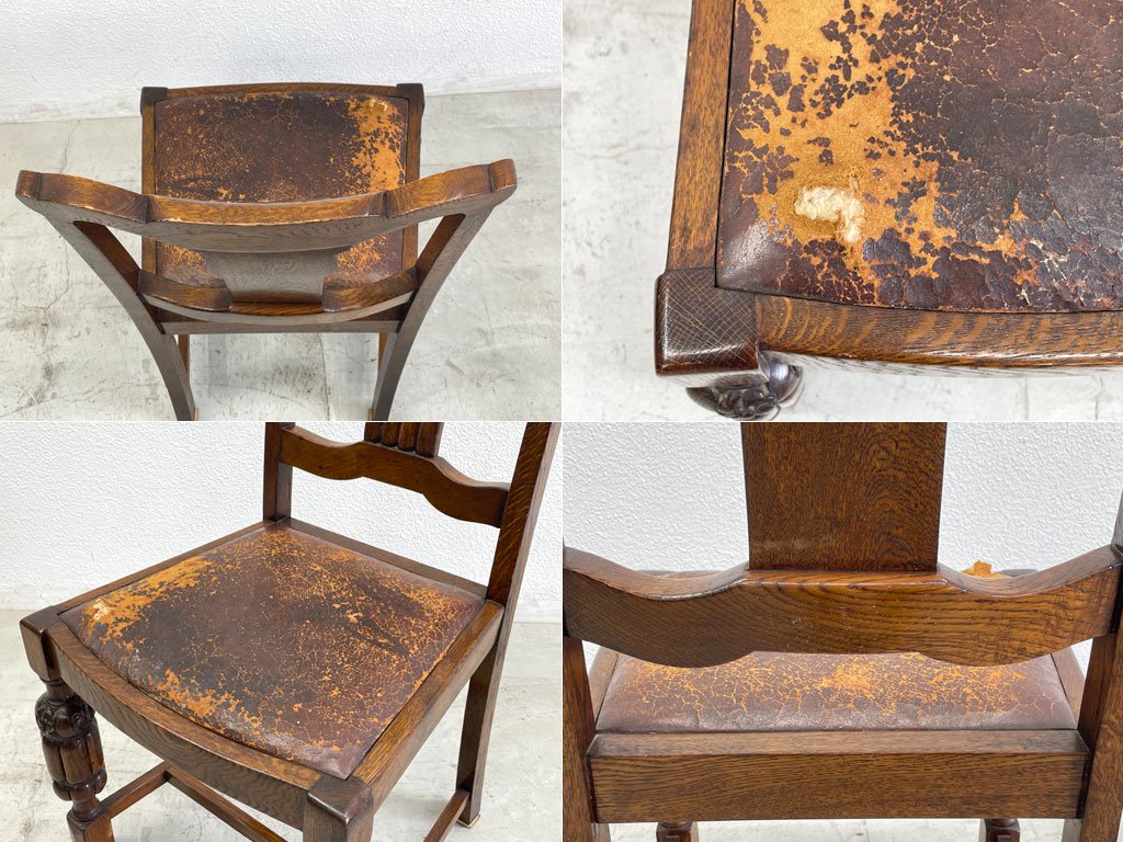 UKビンテージ Vintage ダイニングチェア オーク材 レザーシート バルボスレッグ 彫刻装飾 英国アンティーク B