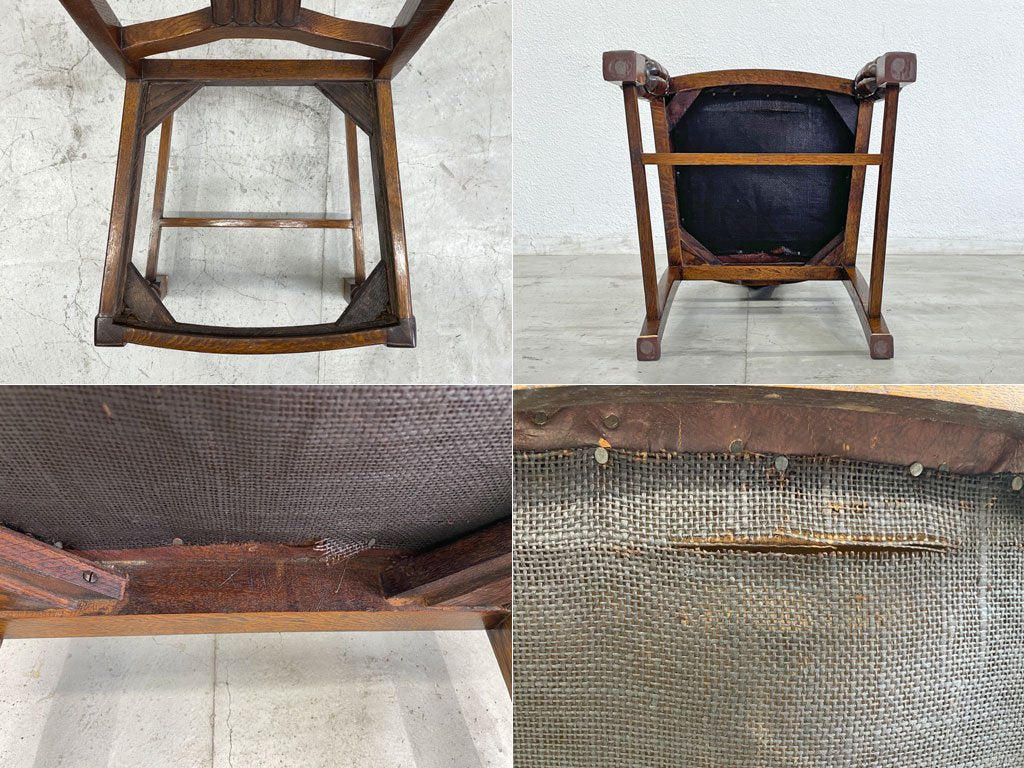 UKビンテージ Vintage ダイニングチェア オーク材 レザーシート バルボスレッグ 彫刻装飾 英国アンティーク B 〓