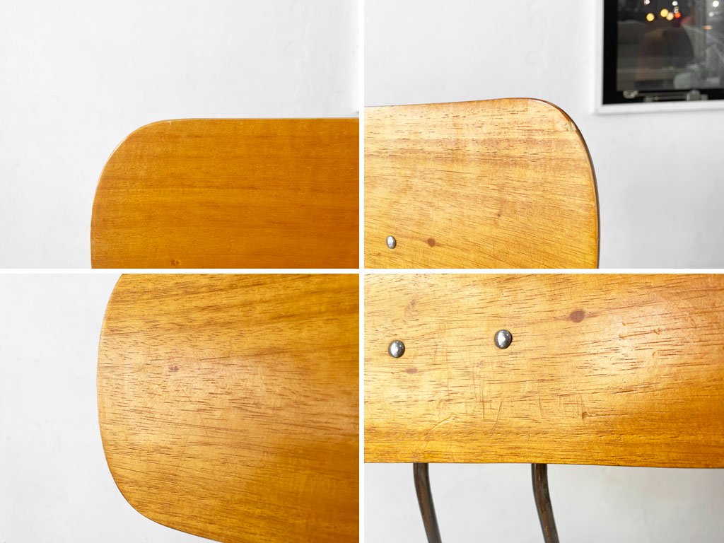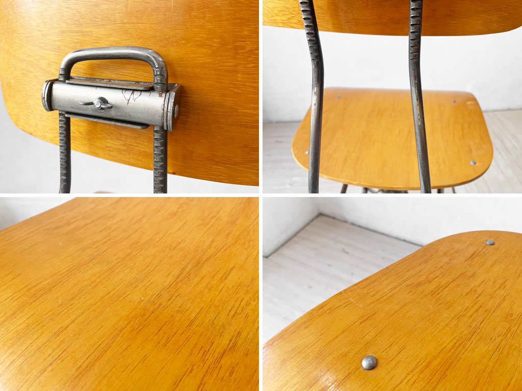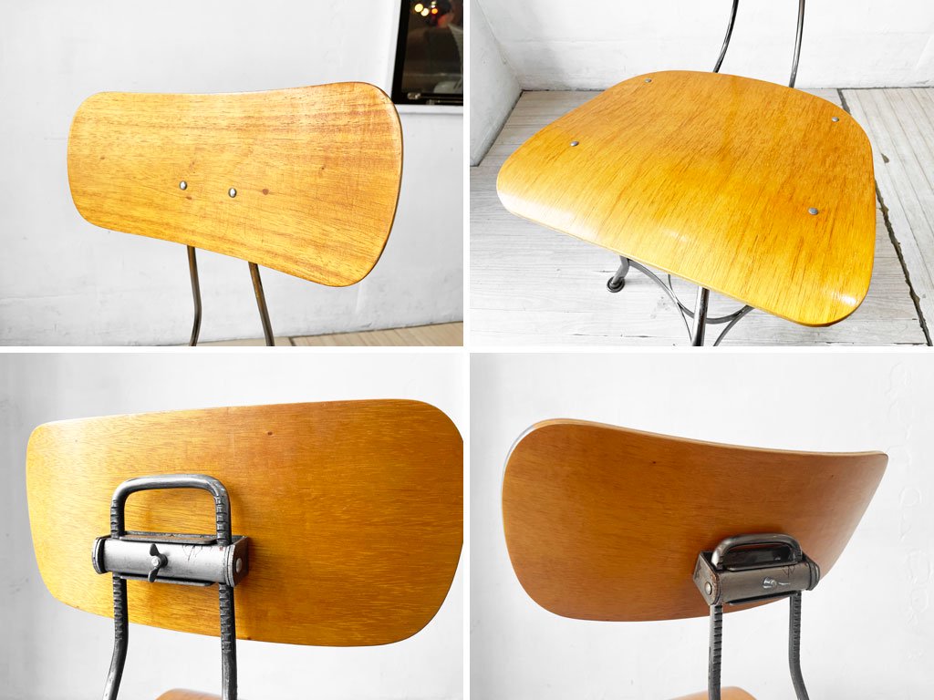 ビンテージトレドチェアを忠実に再現した工業系デザインとなるこちらのチェアは、サイドチェアタイプでマットブラックカラーレッグにプライウッドシートの組み合わせ。