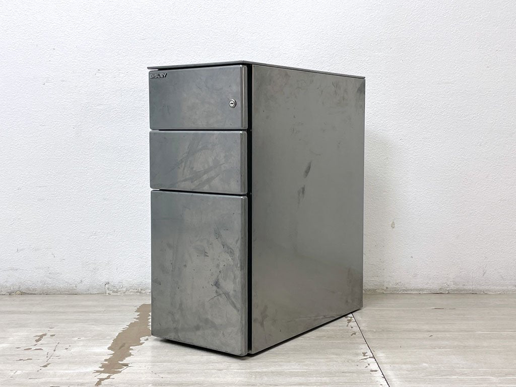 ビスレー BISLEY ペデスタル Pedestal 3ドロワー デスクキャビネット スリムチェスト 希少廃番 オフィス家具 英国 ●