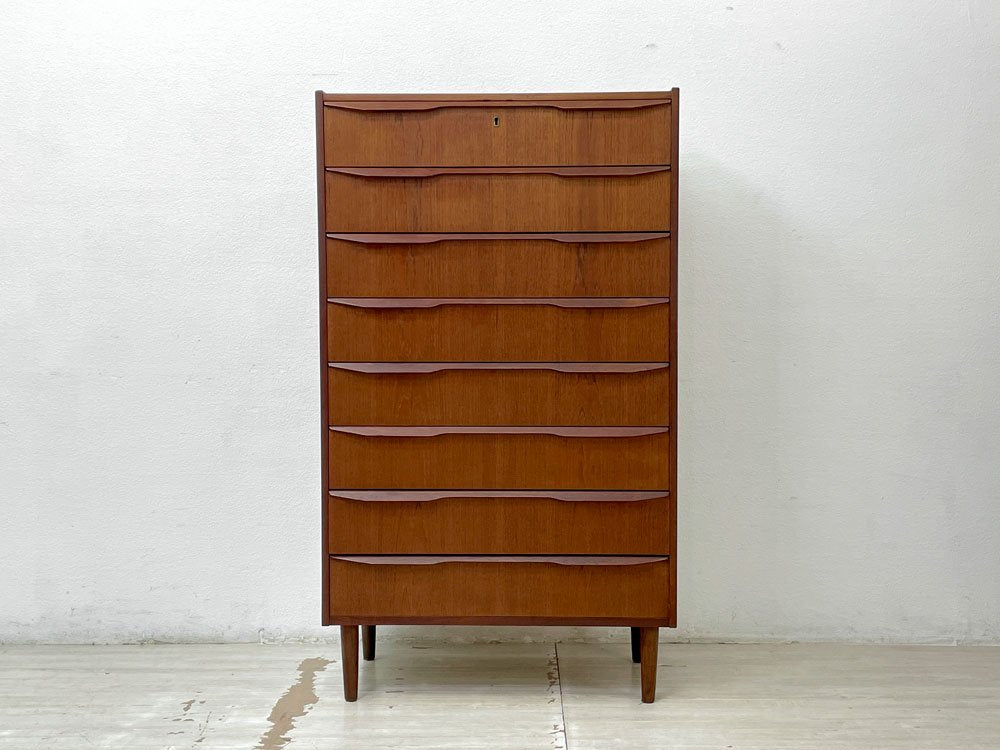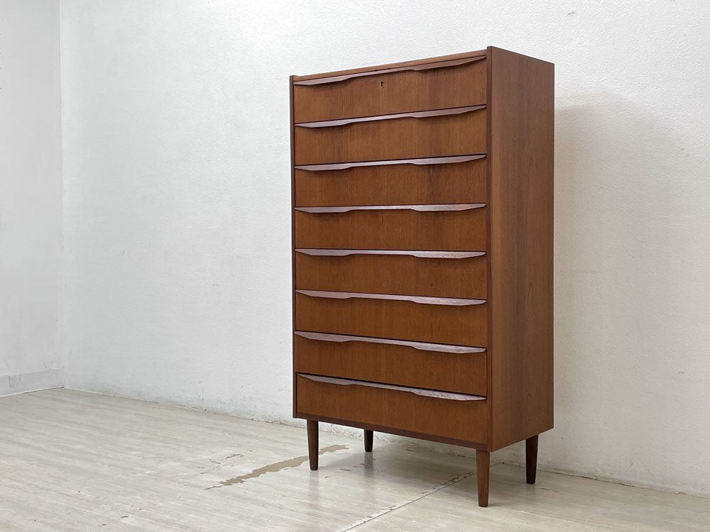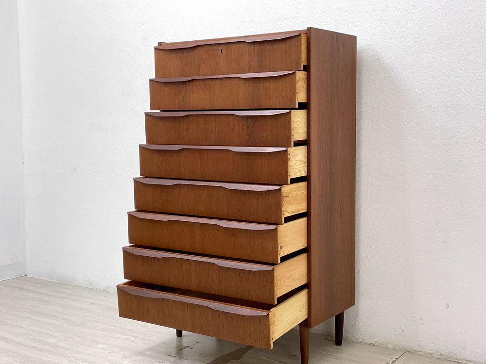 デンマークビンテージ Danish vintage チーク材 トールチェスト 整理ダンス 抽斗8杯 北欧家具 ●