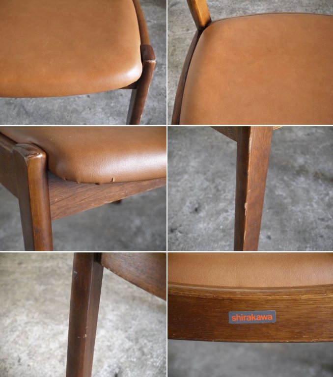 ジャパンビンテージ Japan Vintage オーク材 ダイニングチェア PVCレザーシート サイドチェア シラカワ家具 ■