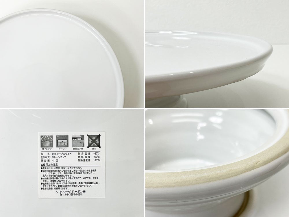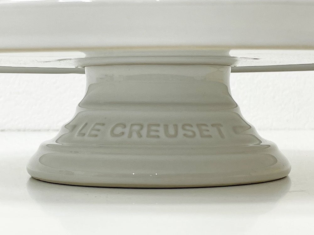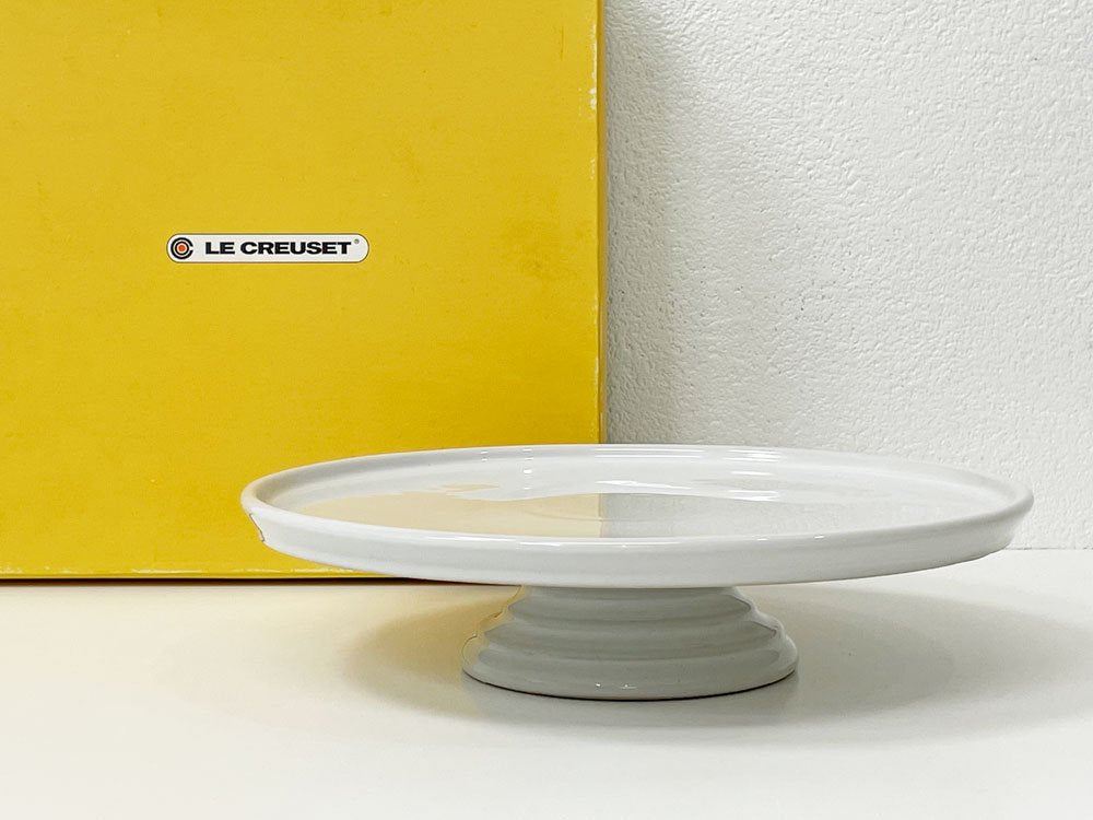 ルクルーゼ LE CREUSET ケーキスタンド Φ29cm ホワイト ストーンウェア フランス 箱付き 未使用品 ●
