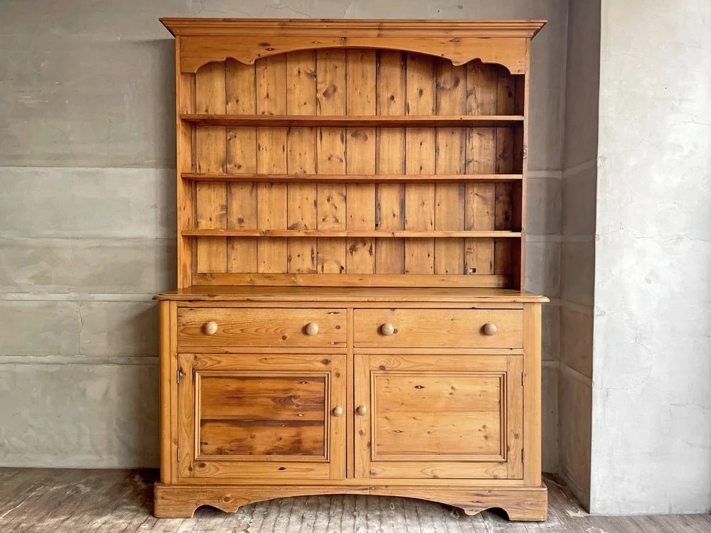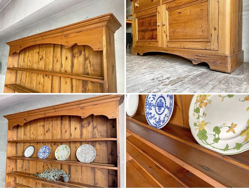 UKビンテージ Vintage パイン材 大型カップボード 食器棚 飾り棚 W161 英国アンティーク カントリー 店舗什器 ~飾る楽しむカップボード~