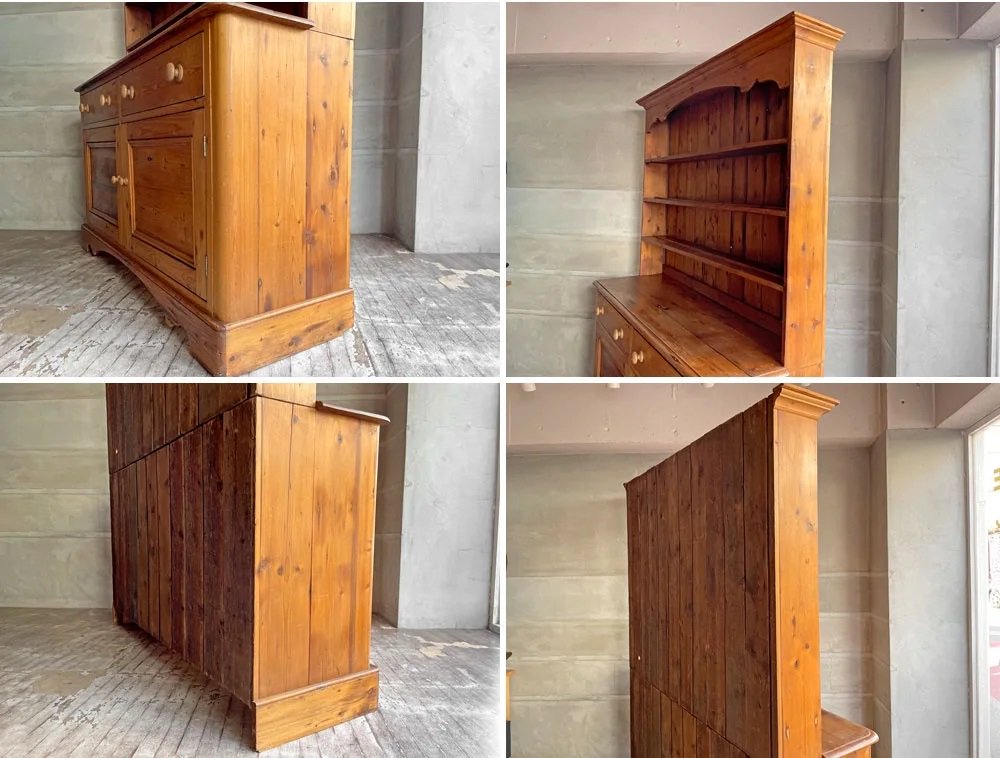 UKビンテージ Vintage パイン材 大型カップボード 食器棚 飾り棚 W161 英国アンティーク カントリー 店舗什器 ♪